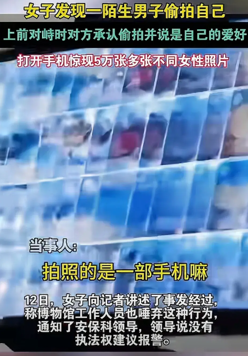 女子通知了博物馆,博物馆称没有执法权,建议女子报警。