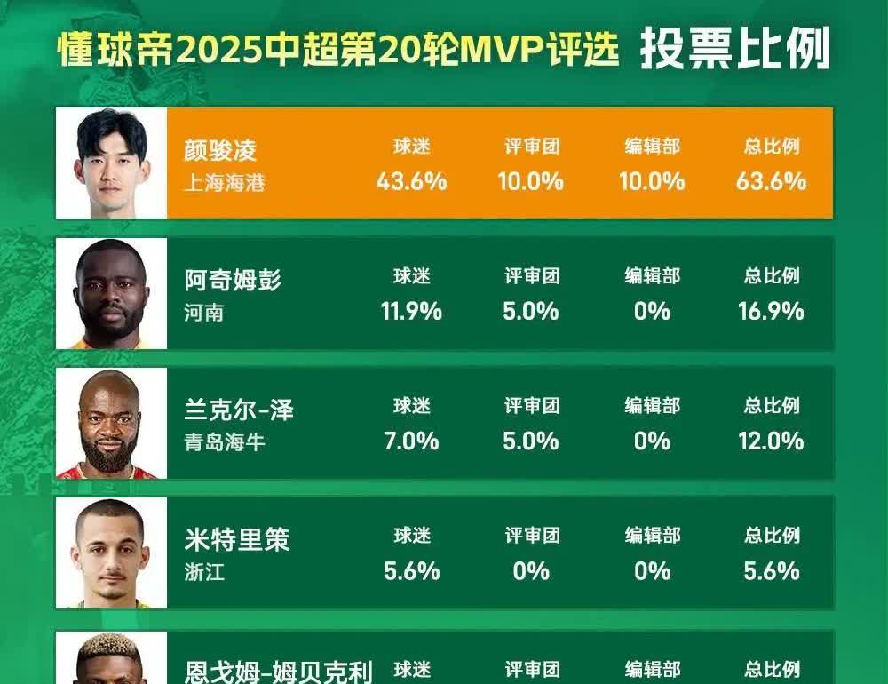 懂球帝打脸中国足协!上海德比的MVP啥都不是,中国足协的草台班子又一次得到了证实!群众的眼睛是雪亮的,专家的眼睛是睁着的,63.6%的比例当选为本轮中超的MVP,难道不是打脸了官方评定的上海德比的当场MVP吗? 颜骏凌在上海德比中的表现堪称犹如神助,这么精彩的表现确实是罕见的,我也在前两篇文章中已经放话,他在第56,第62和第82分钟的三个扑救是最为精彩的,而且不说中超,放眼亚洲也很难有第二个人能把这三个球都给扑出来,颜骏凌有如此难得的精彩表现,为什么不能当选为上海德比的MVP呢? 难道写好了剧本,就一定要把MVP授予前锋吗?草台班子确实不是来搞足球比赛的,而是搞笑的,这不,又证实了一回!