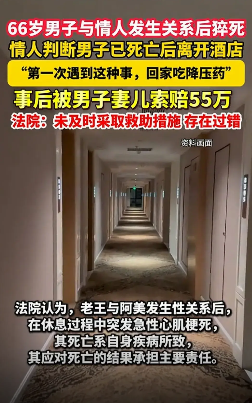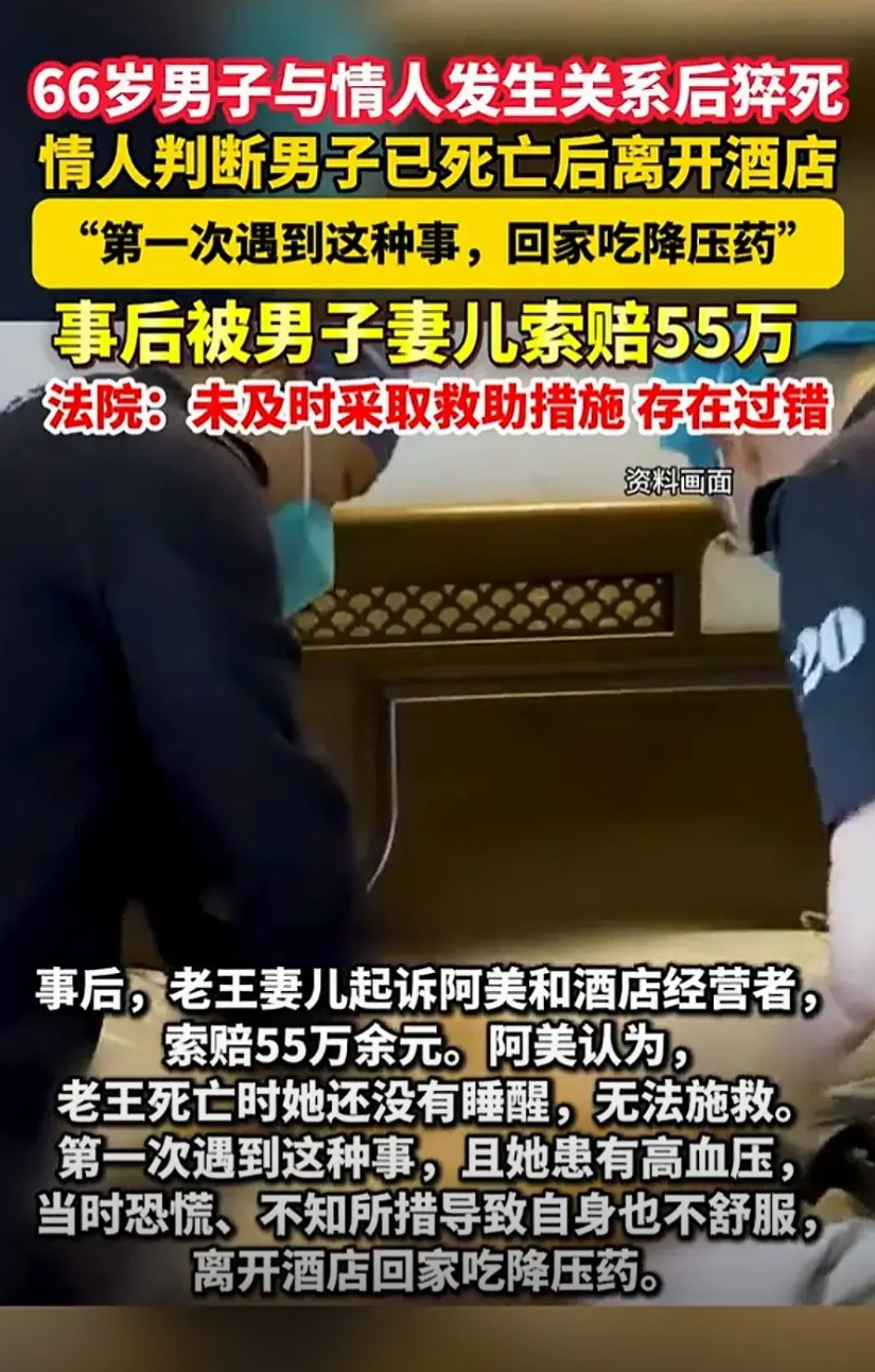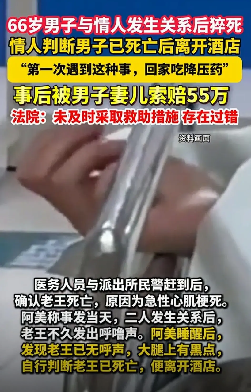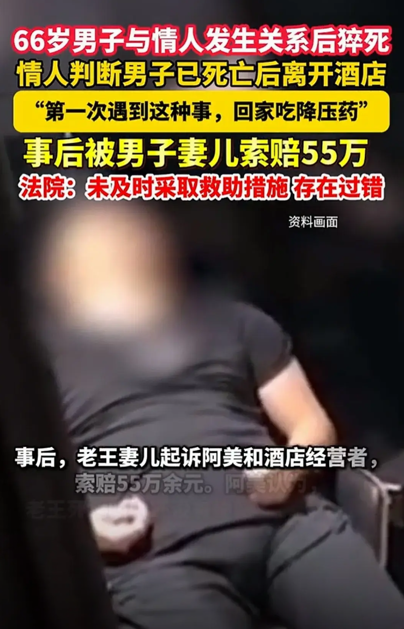 66岁的老人和情人发生性关系后死亡,情人被家属起诉到法院,索赔55万。