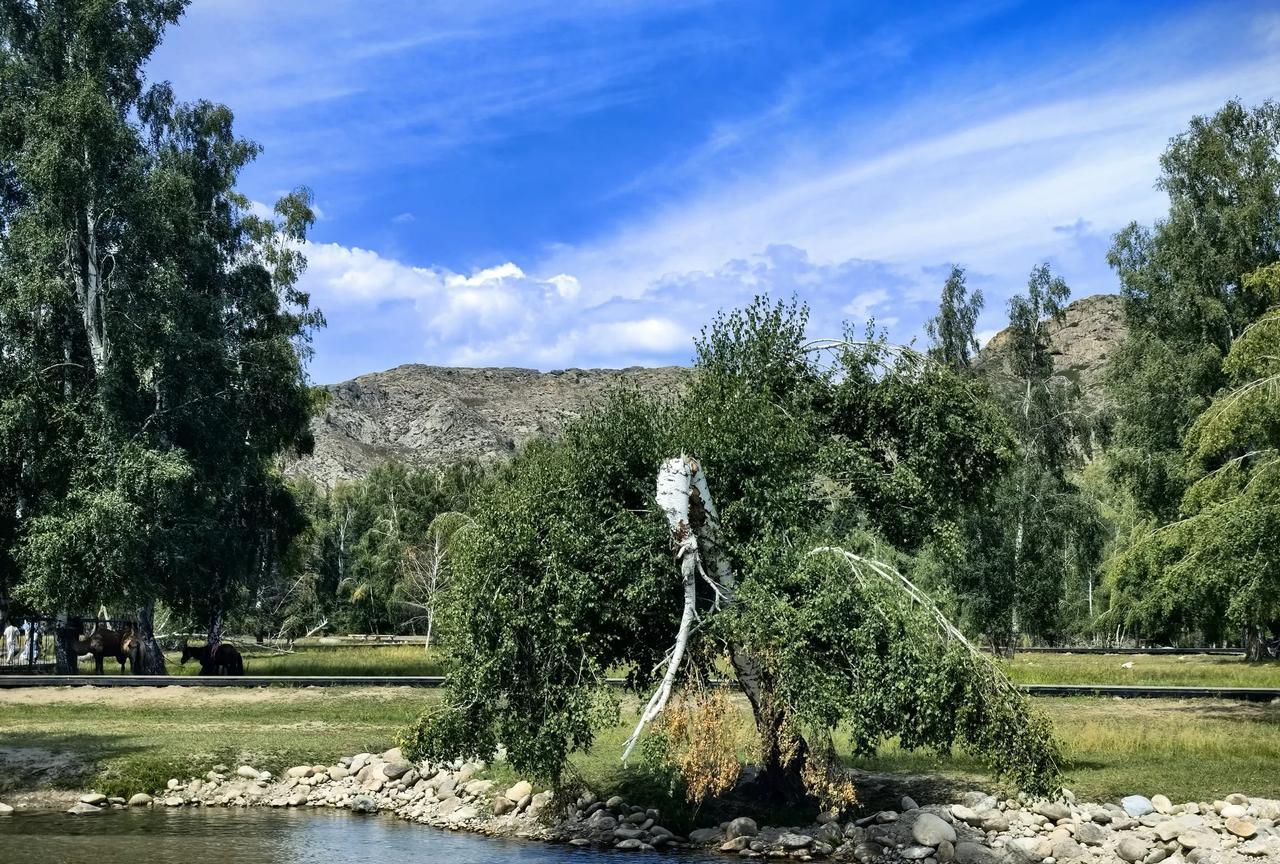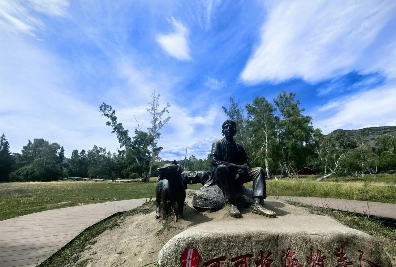 可可托海牧羊人,策马驱云走夕晨。 一曲歌儿承雨露,九天仙女下凡尘。 白桦拔起新枝嫩,低首折弯杨树身, 灵石化猴花果熟,何须入水吼龙神。 注:20250808,一早驱车进入可可托海,这里可以自驾游。边走边停,第一站就是白桦林。牧羊人塑像静静地在那里,还有马儿和狗。拔根而起的白杨树依然枝叶茂盛,被大雪压弯了身体的杨树,仿佛叩问碧水之下的龙门。一首可可托海的牧羊人,让这里闻名遐迩,景区环境管理俱佳,值得一游。#秦安战略# #可可托海自驾游#