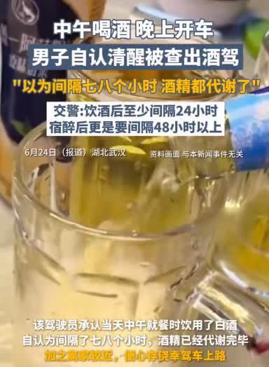“冤不冤!”6月21日,湖北武汉,一男子中午的时候和朋友一起喝了白酒,到了晚上时又开车出门,结果被交警拦下后,男子自以为一下午的时候体内已经没有酒精了,结果却仍然显示体内酒精含量49mg/100ml,网友:这下恐怕后悔了吧! 6月21号那天,湖北武汉有个哥们儿,中午跟朋友们聚餐,一高兴就喝了几杯白酒。喝完他倒聪明,没直接开车,而是叫了代驾,回家倒头就睡。这一觉睡到了下午,到了晚上,他觉得自己已经休息了七八个小时,酒劲儿肯定过了,心里头一琢磨,就自个儿开车出门了。结果呢,半道上碰到了交警查酒驾,一吹那酒精测试仪,好家伙,血液里酒精含量还有49mg/100ml呢,酒驾没跑了!这哥们儿当时脸就绿了,完全没料到。交警一看,二话不说,暂扣驾照六个月,罚款2000大洋,再记12分,一气呵成。 这事儿一出,网上立马炸了锅,大家都说:“这家伙,后悔药都没地儿买去!”其实啊,这种事儿生活中多了去了。有人头天晚上喝了酒,第二天早上一抹脸,觉得自己倍儿清醒,上车就走;还有人半夜喝两杯,小憩一会儿,直接开车出门,哪知道危险就在身边晃悠呢。酒精这玩意儿,代谢快慢得看个人,体质、喝多少、代谢速度,哪个都能影响,不能光看时间。交警也再三叮嘱:喝完酒啊,最好等24小时再摸车,要是喝大了,宿醉那种,最好等48小时,安全第一嘛。 为啥这事儿能引起大家注意?还不是因为这哥们儿那“我觉得没事儿”的想法和现实差距太大。他不是喝完立马开车,还专门等了好几个小时,中间还睡了一觉,结果还是没躲过。这种“侥幸心态”,不少人心里都有,这也是为什么这事儿能火,引起大家共鸣。这不仅仅是一条交通违法的新闻,更是一堂活生生的安全教育课,告诉所有开车的朋友们:酒后不开车,不光是法律规定,更是对自己和别人生命的尊重。