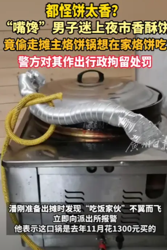 “都怪饼太香?”近日,江西高安,一男子在夜市买了一个肉饼,因味道太好,直接迷上了!然而,在询问老板做饼秘诀后,男子竟然在凌晨将烙饼的锅偷走,想自己在家吃过瘾!网友:真是个人才啊!