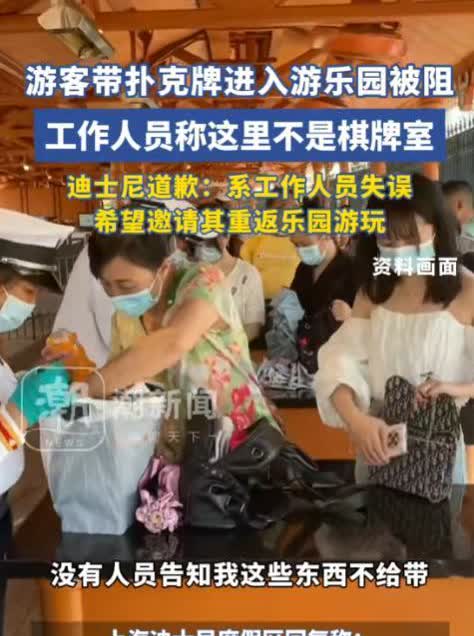 上海,一男子带着家人去迪士尼游玩,却在进园之前被安检人员拦下,原因就是他带在身上的一副扑克牌,工作人员表示扑克牌只能寄存或自行处理,男子询问原因,可工作人员的回答让人哭笑不得! 上海迪士尼,那可是好多人都想去的“快乐天地”。不过,有个哥们儿带着家人去玩的时候,却因为带了一副扑克牌被挡在了大门口,这事儿一下子就在网上炸开了锅。 这个哥们儿在过安检的时候,工作人员发现他兜里揣着扑克牌,就让他要么存起来要么扔掉。理由是:“这儿是迪士尼,可不是打牌的地方。”哥们儿懵了,问扑克牌有啥危险,结果人家工作人员也说不上来,就说“规定就是这样”。旁边的人看到这一幕,都哭笑不得。后来,哥们儿把这事儿发到了网上,一下子好多人都关注了。 网友们纷纷发问:扑克牌又不是啥坏东西,也没有危险,为啥不能带进去?还有人说,存个东西还得花10块钱,这也太不合理了。迪士尼那边呢,客服出来说游客手册上也没说不能带扑克牌,具体还得看现场情况。这话一出,网友们又调侃说:“这规矩变得也太快了。”说实话,园方是想维护秩序,但规矩说不清,执行起来也随心所欲,很容易让人不理解、不满意。游客们就想要个明明白白的规矩,而不是看工作人员的心情。 这事儿越闹越大,上海迪士尼最后也出来道歉了,说是工作人员搞错了,还邀请那个哥们儿再去玩一次。这一场因为扑克牌闹出来的风波,最后是道歉解决了,但也给服务管理提了个醒。