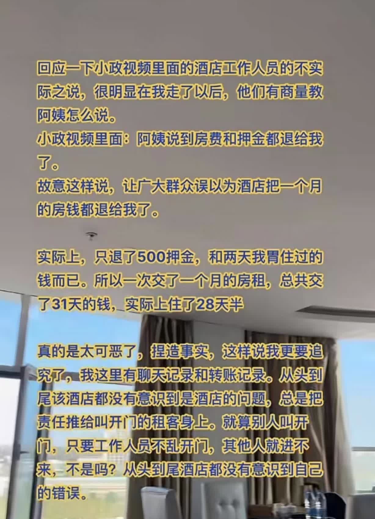 太暴力了!陕西榆林,女子因工作需要,租住1个月酒店,她有裸睡的习惯,每天都会上倒锁,可没想到,还是出事了!她半夜睡得正香的时候,突然听到了刷门卡的声音,她惊醒后大声质问“是谁”?可门外没反应,继续开门甚至撞门,女子躲被子里吓哭!而酒店事后的回应,更让她无法接受。 在陕西榆林,有个姑娘因为工作原因住进了酒店。她有个习惯,喜欢裸睡,所以每晚都会把房门反锁得紧紧的。但没想到,一次意外的“撞门风波”让她对酒店的安全彻底失去了信心,还曝光了酒店服务的大问题。 7月16号半夜,姑娘正睡得香呢,突然听到门外有刷门卡的声音。她吓得立马喊了一声:“谁啊?”可外面一点动静都没有。接着,门被不停地刷,然后开始砰砰砰地撞。姑娘吓得钻进被窝,浑身发抖,眼泪哗哗地流。没过多久,砰的一声巨响,门被撞开了,整个房间一下子黑了。她吓得动都不敢动,等外面没声了才敢起来,一看门框都撞坏了,门大开着。 她赶紧打电话给前台,结果前台的解释让人无语:原来是隔壁的男客人让开门,服务员搞错了,把她房间的门给开了。因为门反锁着,工作人员居然没问清楚是谁,就帮着男客人撞门。酒店不但不道歉,态度还特别差,只给退了500块押金,其他的损失一分都不赔。最后还是警察来了,酒店才勉强说了几句好听的。女孩子选了报警,还换了家酒店住。这事儿在网上闹得挺大,大家都强烈谴责,说得要加强对酒店安全和服务的管理,得保护好咱们消费者的隐私和权益。