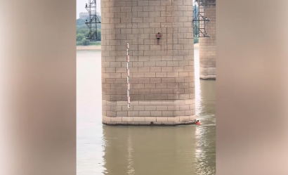 事发当天,一位路人在河边玩耍时,偶然间看到了这位大爷的举动,当看到他是在徒手攀爬桥墩时,顿时感到惊讶无比。