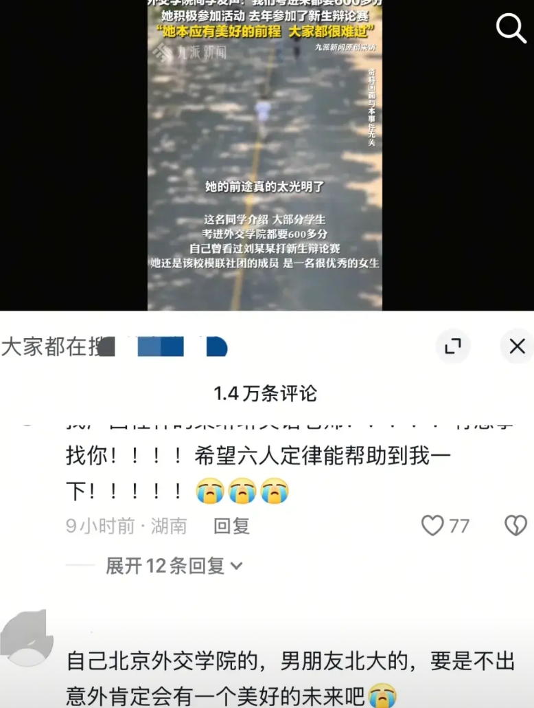 她考上外交学院,希望当一名外交官,她喜欢穿汉服,人非常的开朗,当天就是和朋友去景区 拍照时发生悲剧的。