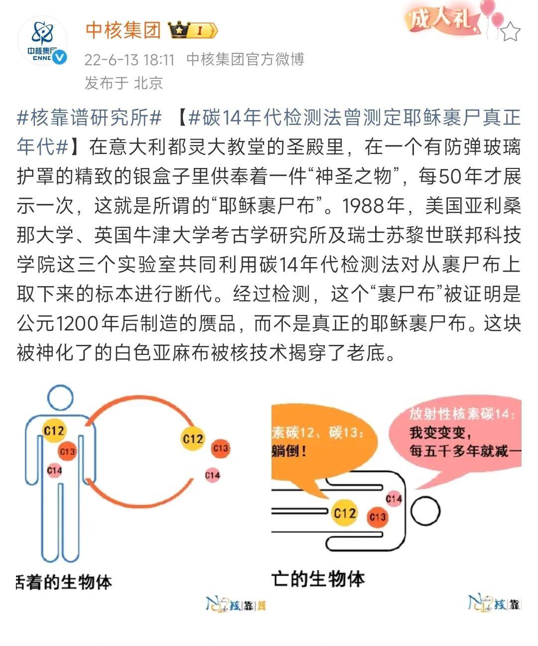 中核集团居然下场力证西方文物造假,这下还算是实锤了吧!而且这篇帖子还不是最近才发的,而是三年前就发了。说1988年,美国亚利桑那大学、英国牛津大学考古学研究所及瑞士苏黎世联邦科技学院这三个实验室共同利用碳14年代检测法对从裹尸布上取下来的标本进行断代。经过严格的检验,这块裹尸布居然是假的,是后人伪造的,也就是硬生生把这块假布的历史向前拔高了1200年。实际上这个很能说明文了,那就是西方不是没有历史,而是严重注水,有的甚至是伪造的,由此可见西史辨伪是十分有必要进行下去的。 我的宝藏兴趣#