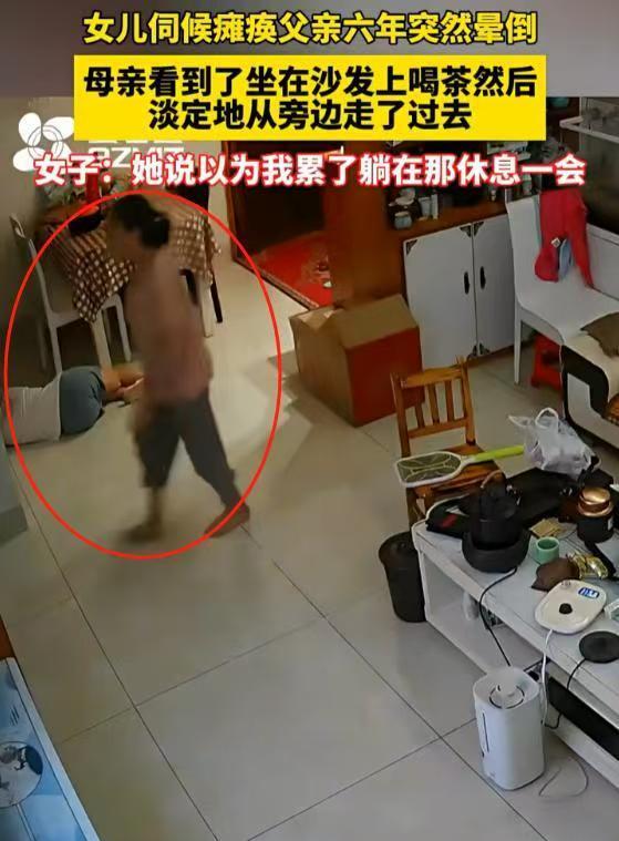 女儿伺候瘫痪父亲六年,突然在家晕倒,母亲看到了坐在沙发上喝茶,然后淡定地从旁边走了过去,女子醒后解释:“母亲说以为我累了,躺在那休息一会!”网友直言:是亲妈吗? 久病床前无孝子?话不能说的那般绝对,至少对于江苏一位为了照顾瘫痪的父亲,而毅然决然辞职6年的女子来说,她是众人眼中的大孝子。 可没想到,自己因为过度劳累晕倒之后,母亲的反应却让她心情五味杂陈,不知道该说些什么? 女子的父亲身体向来不是很好,6年前,父亲因为突发疾病,即便被及时送到医院,但还是瘫痪了,从那之后,女子的父亲每天只能与床、或者轮椅为伴。 女子从小便十分懂事儿,体谅父亲挣钱养家的不容易,况且父亲对自己十分疼爱,你养我小,我养你老,这是女子刻在脑子里亘古不变的想法。 母亲已经年迈,照顾瘫痪在床的父亲,想必是十分困难的,思来想去,女子决定扛起家庭与生活的重担,毅然决然辞职,只为更好地照顾父亲。 女子原本有一份还算稳定,且收入不错的工作,这年头工作不好找,可家中的父亲与工作相比,显然是父亲更为重要,毕竟没有父亲当初的付出,哪有自己后续的收获? 当女子将辞职报告交给公司老板时,老板蛮震惊的,因为女子工作能力不错,在公司也算是混的风生水起。 且公司待遇很好,缴纳五险一金,还有各种补贴,若是女子辞职,想要在后续再找一份这么优秀的工作,估计是提着灯笼都难找。 “你真要辞职?” 老板看着女子,问出了心中的疑惑,谁料,女子的回答,让老板险些红了眼眶。 “家里老父亲瘫痪了,我不照顾,他受罪,我是女儿,工作再重要,也没有他重要不是?” 老板沉默着点点头,辞职后,女子便马不停蹄赶回家中,自此,照顾瘫痪父亲的重担便完全落在女子瘦削的肩膀上。 担心父亲长时间躺在床上,生褥疮,女子会每天坚持为父亲擦拭身体,帮助父亲翻身、按摩,衣服更是天天换洗,床单被罩,也是更换的很勤。 后来,女子又担心父亲躺在床上久了,心情不好,又为父亲买了轮椅,天气好的时候,女子就推着父亲外出遛弯、晒太阳、看看外面的景色。 每天,女子照顾父亲都是尽心尽力,还会特意做一些父亲和母亲都喜欢吃的饭菜,在女子的照顾下,父亲的心情也开始变得开朗起来,每天也能说说笑笑了。 这一照顾就是整整6年,因为担心父亲晚上出什么问题,或者有什么事情找自己,自己听不到,女子睡觉的时候根本不敢“睡死”,这导致女子精神有些紊乱,身体素质也是直线下滑。 8月份的一天,女子因为过度劳累,突然晕倒在家中客厅的地板上,距离饭桌不远,女子晕倒的地方位于客厅和沙发之间。 女子的母亲并未注意到女儿晕倒?而是自顾自坐在沙发上悠哉悠哉的看着电视,喝着茶,很是惬意。 女子晕倒之后,再醒来,这个过程持续的时间不短,女子发现自己依旧躺在地上,这让女子心中疑惑,难道母亲不知道自己晕倒了吗? 这之间根本没有任何阻挡,自己躺在地板上,母亲怎么会看不到呢?抱着好奇的想法,女子便查看了自家安装的监控。 这一看监控,女子的心凉了半截,女子发现,自己晕倒后,母亲依旧在目不斜视看电视,期间,母亲还从自己身边经过,拿茶具,泡茶,并未在自己身边多逗留一秒。 母亲的行为,让女子心里有些受伤,在清醒后,尤其是查看完监控之后,女子便询问母亲:“妈,您看到我晕倒,怎么一点反应都没有啊?” 彼时的女子心中还是抱有一些幻想的,谁料,母亲的回答直接让女子呆愣在原地,母亲头也不抬,回复道:“我以为是你累了,躺在地上休息一会儿。” 听到母亲的回答,女子半天没有反应过来,或许是心中难过,想要寻求一些安慰吧,女子在8月7日当天,将那段监控视频发布到了网上,网友们议论纷纷,安慰女子。 对此,你们怎么看?