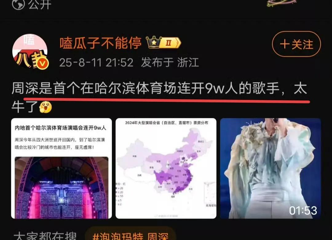周深哈尔滨演唱会两场9万余人! 哈尔滨演唱会官方数据来了,太牛了! 是哈尔滨首个