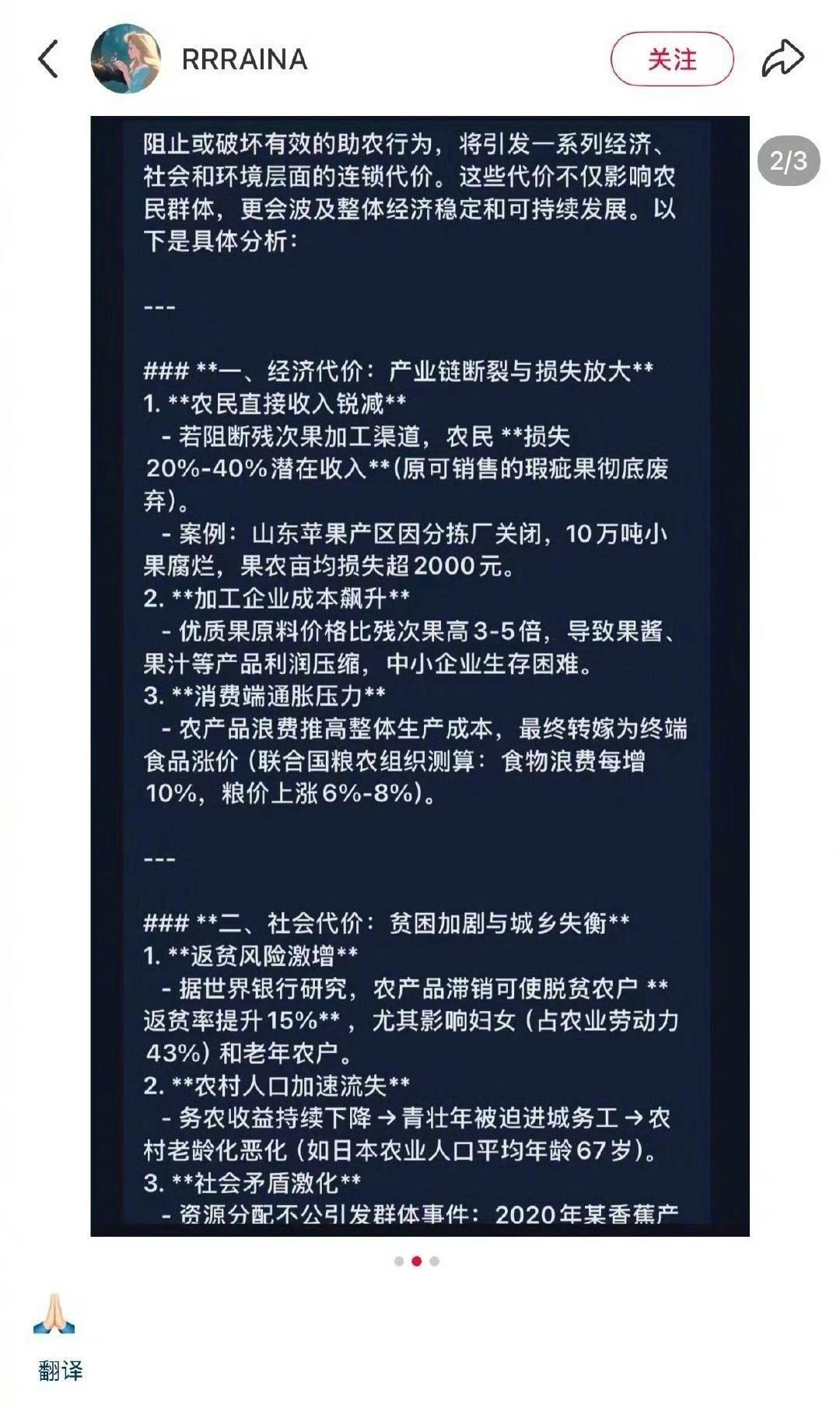 赵露思深陷“假助农”风波!起因是她称心疼被冰雹打坏的苹果,采用直播助农的方式带火了苹果干跟苹果汁,结果被网友扒出苹果汁的公司与她闺蜜有直接关联。赵露思的苹果汁约10元/238ml,国民品牌的果汁大约是3-4元/200毫升。 现在“苹果汁”上了热搜以后,赵露思此刻将直播间简介改成“做什么都是错的”。在直播间疑似回复几点:1、没有拿钱 2、买不买是大家自己做的选择。 赵露思的闺蜜兼助理的回应更是莫名其妙,称“作为演员,不会演戏”,“作为人,没有良知,乌合之众”、“恶心!”。也不知道到底是在澄清助农这件事情的本事,还是在内涵其他艺人。 盲猜一波这个事情的舆论走向: 1、粉丝:这是经纪公司在搞露思 2、粉丝:这是对家在搞露思 3、本人直播:我问心无愧,不要玩阴的