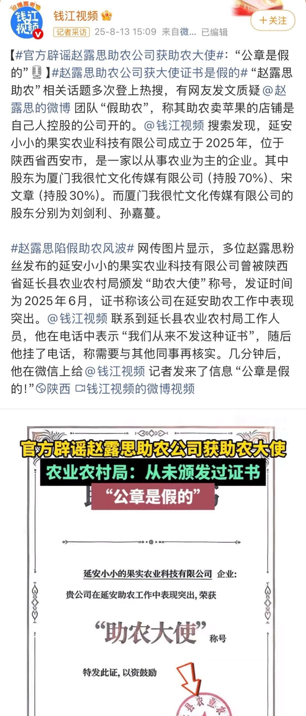 赵露思深陷“假助农”风波!起因是她称心疼被冰雹打坏的苹果,采用直播助农的方式带火