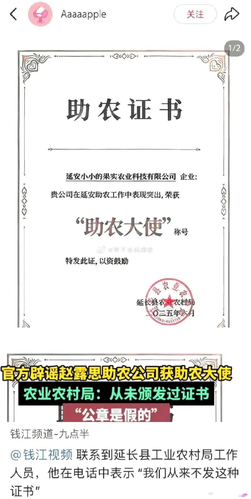 吃了一下午赵露思的助农瓜,总算明白争议在哪了。 第一,她带团队做了个果汁品牌,然后说自己不赚钱,就是为了助农。这点是存在问题的,如果逻辑成立,那么是不是所有的果汁公司农产品公司都可以光明正大的说,我们不是为了赚钱,我们是在助农!绝大部分网友并不认可她的说法,这是她第一个被质疑的点。 第二,她的助农公司官网上发布过“助农大使”证书,但是当地明确表示没发过这种证书,赵露思助农公司证书上的公章也是假的。此事被钱江媒体核实后,赵露思发声“钱江媒体好意思叫媒体吗”,问题被实锤后死不承认,这是她第二个被质疑的点。 第三,她声称助农她一分钱也没赚,就是纯推荐,但是当地发文明确是和赵露思团队谈的合作,助农公司法人是闺蜜,很明显公司的成立离不开赵露思,按照业内通常做法来看,明星不方便就由亲友代持公司股份是很常见的事,也就是说,赵露思和助农公司是利益相关人,那么一分钱没赚的说法就存疑。这是赵露思第三个被质疑的点。 目的不纯、问题被发现了还不悔改、撇不清利益关系,这就是赵露思“公益助农不赚钱”这一说法不被认可的原因。