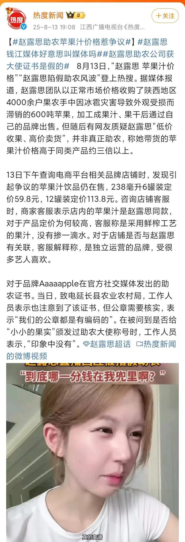 吃了一下午赵露思的助农瓜,总算明白争议在哪了。 第一,她带团队做了个果汁品牌,然