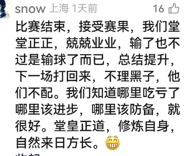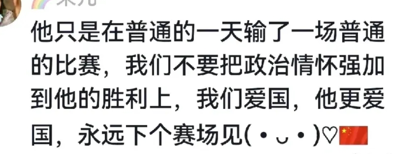 亚军领奖台上,楚钦的表情意味深长。 有不甘,有倔强,亦有长舒一口气后的释然。 网友们也展现出了极为成熟的冷静与理智。 大家尽管和楚钦一样,难过且不甘,但也逐渐摆脱了以一场比赛胜负来评判英雄的惯性思维。 正如一位网友所言,他只是在平常的一天输掉了一场平常的比赛罢了,莫要把某些情怀强加到他的输赢之上。我们爱国,他亦更爱国。 下一个赛场见。