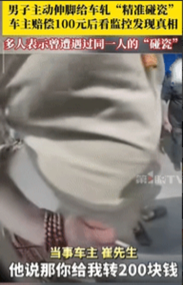 碰瓷成功了?”辽宁沈阳,一男子开车时,突然听到车旁的路人叫了一声,男子急忙把车停下来,路人索赔200元,却被男子拒绝,他只愿给100元,路人爽快的答应了,事后男子越想越不对劲,就看了行车记录仪,结果发现了真相! 据第1眼新闻8月12日报道,男子驾车的路段,来往的行人比较多,所以他的车速非常缓慢,确保两边都没问题后,才继续通行,可他千防万防,还是没防住碾上别人的脚。 路人扶着他的车,阻止他前行,疼痛感瞬间袭来,男子觉得自己闯下大祸,就和路人商量着私下解决,路人是个敞快人,开口就要200块,男子不想给。 不过毕竟是自己的过错,一分不赔是不可能的,于是试探性说了个数,本以为路人会拒绝,没想到对方立马应下,男子不想因为自己,影响到别人没法通行,便把钱给了对方。 路人拿到钱就走了,男子启动车子也准备离开,他总觉得这事哪里怪怪的,如果真的是路人有理,肯定不会这么轻易就放过他,男子思来想去,还是决定看看记录仪。 这不看不知道,一看还真发现了其中的猫腻,原来是路人看到男子的车后,主动把脚伸在轮胎下,路人比他还害怕报警,这一查,岂不是就知道是他自导自演了。 男子果断报警,并把这事发在网上吐槽,出乎男子预料的是,竟然有不少网友私信他,原因就是他们也同个路人讹过,可见路人不是第一次干这事。 对于这件事情,大家有什么看法? 信息来源:第1眼新闻 2025年8月12日