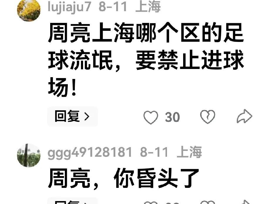 周亮何以要攻击武磊 看到自己支持的球队输了,气得几近昏厥。于是拿残疾人来代称武磊之名,还充当起太平洋警察:说武磊看球只能待在包厢里,不许进场和海港队友庆祝,不许拍照留证,硬是将挑衅的帽子扣到武磊头上,并且煽动保安应限制武磊的进出自由,口气比力气大了不知多少倍…… 为何他会与极端球迷沆瀣一气呢?看了跟帖的文字,才知晓其历史污点铁证如山,在局子里待过很长时间,可见周亮的心理早就从骨子里残疾了。 和武磊相比,心理残疾的周亮不过是渺小的蝼蚁!