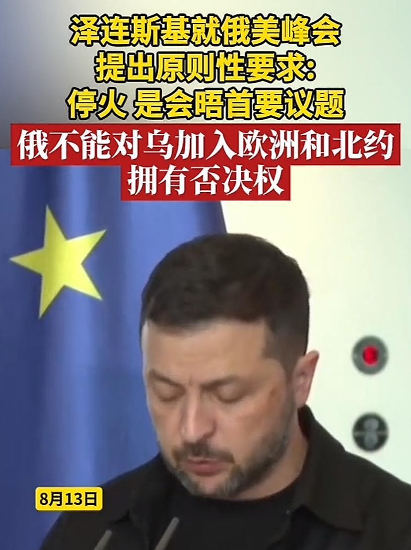 泽连斯基向美俄峰会喊话,提了三点要求: 第一,要给乌克兰承诺安全保障。 第二,大俄不能对乌克兰入欧或加入北约持有否决权。 第三,如果大俄不同意停火,美西方加强制裁。 这么看来,还是时时刻刻惦记着加入北约,泽连斯基明显松口了,也同意停火。一旦俄乌战线停火,泽连斯基处境极不利,爱好和平的人们会清算旧账,再开启战争难了,人们真的是打厌倦了!