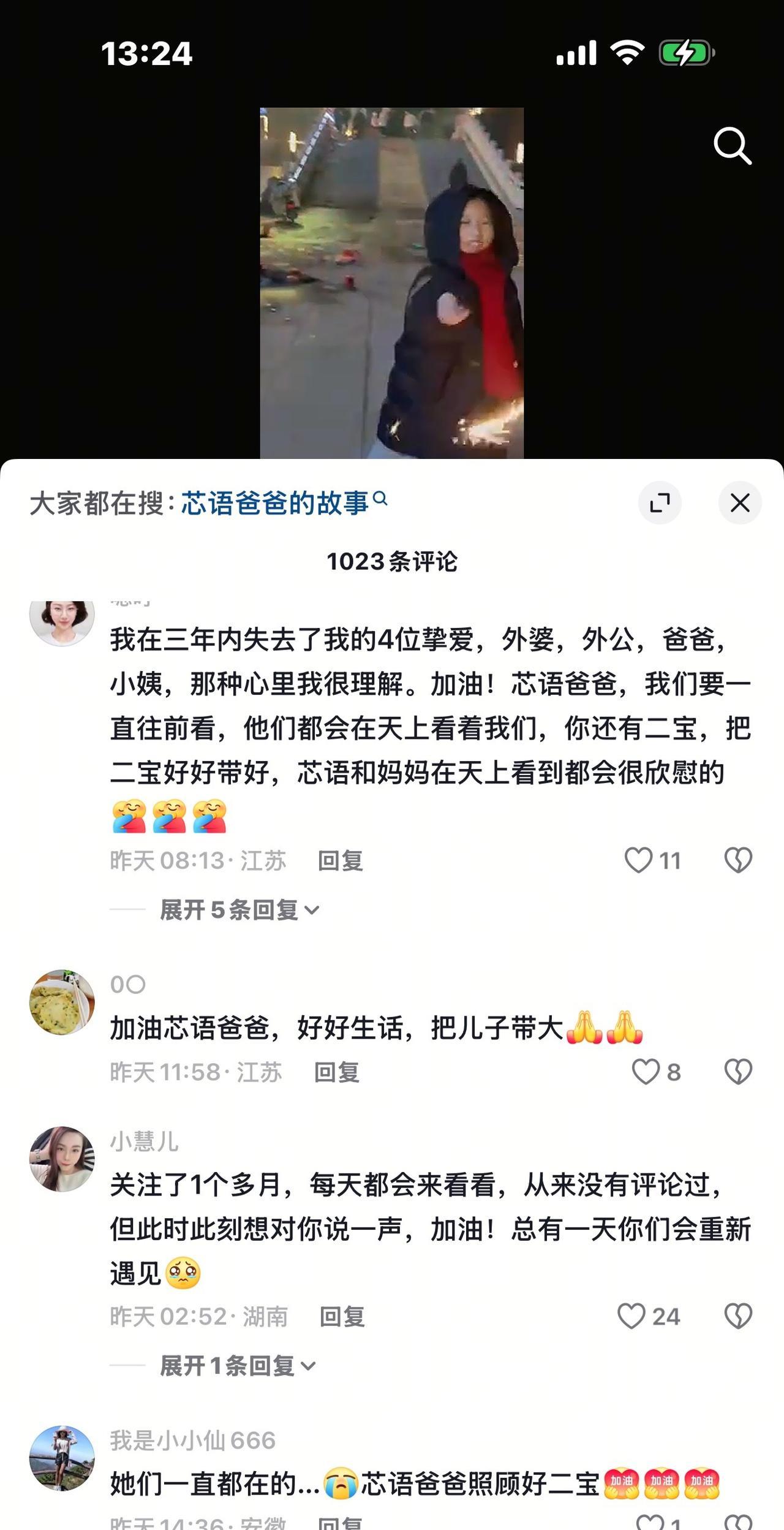阿坝坠河身亡的明彩,他老公昨天终于释怀了,重启新生活,不再悲伤于过去,说要为二宝振作起来、努力奋斗了! 这真是个好消息! 大家也喜闻乐见这样的好消息,粉丝们都不吝啬给他点赞,这则“宣布重启新生活”的视频,他2.6万粉丝,就获得了1.1万点赞。 看来,大家都喜欢在逆境悲伤中奋起、积极向上,努力生活的人。 明彩老公(也就是芯语爸爸)可能比较年轻,才30来岁,是阿坝3对母女坠河身亡后,最看不开的一位丈夫、父亲,比较情绪化。在阿坝搜寻遗体时,他天天借酒浇愁,麻痹自己,走不出来,想要忘记伤痛。 事发一个多月时间,他回到江苏老家后,还是一蹶不振,天天以泪洗面,痛苦不堪。甚至还说“太难过了,想跟她们一起走”的傻话。 许多网友都担心他出事情,都善意的安慰他,鼓励他,说一直关注他,一定要陪着他一起熬过难关…… 或许网友们的话有用了吧,昨天,芯语爸爸终于发文,一改往日萎靡不振、消极负面的风格说: “闺女,爸爸已经开始释怀了,希望你和妈妈都已经找到了一户好人家,重新过好完美的一生,我也开始为二宝努力了,我们一起加油,总有一天再会相见。” 言语确实令人振奋,让人看见不远的曙光而欣慰。 还有一些和芯语爸爸有相似经历的人,失去了自己的至亲,特别能感同身受,也情真意切,给予他深深的理解和同情,并现身说法,如何走过那些看似跨越不了的伤痛。 一位本地的邻家侄女对芯语爸爸说: “芯语爸爸,我是你家门市后面的邻居家的侄女。我亮亮跟我姑父去年一年,连续发生了意外,我奶奶一年之内失去了唯一的女儿跟女婿。日子不知道怎么就熬过来了。我今年30,我父母在生我之前有个儿子,在3岁的时候发生了意外:溺水。我奶奶不吃不喝几天,瘦得皮包骨,妈妈见到男孩就说是她儿子。他们讲给我听,我感觉他们那种痛苦,已经被我的出现释怀了,能有什么办法呢!生离死别这课,每个人都经历过。你一定要向前看,走出来,(妻女以前的)照片尽量少看一点,千万不要胡思乱想啊,好好的陪儿子和父母,振作起来吧!” 另一名贵州的网友也说: “我也刚失去了我的老公,我们才结婚半年,释怀不了,每天熬夜到天亮泪流满面,熬不住了,熬一天是一天吧。” 还有一位网友说的更加真实: “什么叫释怀?只是无能为力罢了,就像我接受不了我妹妹的离世,从每天的泪流满面到现在的麻木,现实让你不得不接受!” 是啊,我们每个人到这世上一遭,都要经历生死别离,或早或晚,最后所有人的归宿都是一团渐渐散去的青烟,变成无机物重回大自然。 相信网友们这些充满感情的话语,这些深深的理解和同情,人们对生死别离的共同体验,会在每个人心里引发共振,会在芯语爸爸心里也引起共鸣,而慢慢减轻他的一些伤痛吧。 祝福他早日走出阴霾,真正重启新的生活! [祈祷][祈祷][祈祷]