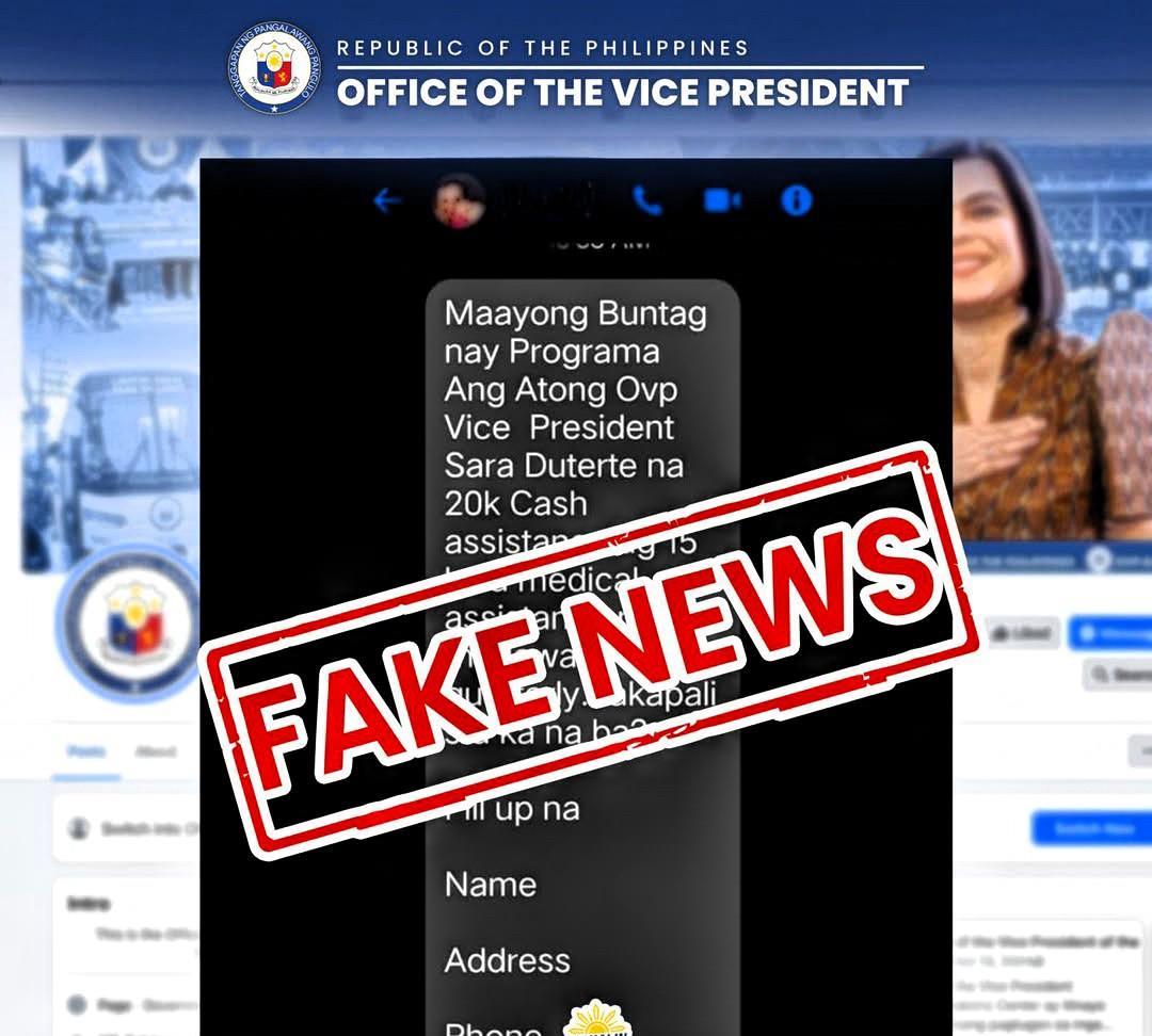 菲律宾副总统莎拉·杜特尔特的办公室警告公众警惕以她的名义发放的虚假现金援助。 菲律宾副总统办公室在Facebook的一则帖文中指出,一条假冒莎拉副总统办公室的假消息正在流传。据报道,这条假信息要求提供个人详细信息,以换取2万比索的现金援助。 “这是假新闻,”副总统办公室表示。 莎拉.杜特尔特办公室敦促民众不要回复这条信息或点击其中的任何链接,并报告给各自的官方账号及政府机构。