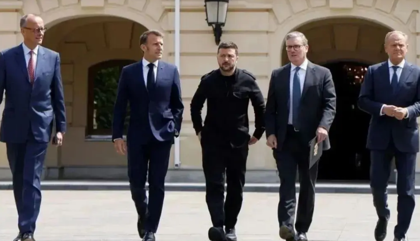 欧洲领导人集体支持基辅立场。德国总理默茨、法国总统马克龙、英国首相斯塔默及欧盟主席冯德莱恩均表示,和平谈判必须在停火后展开,且领土问题只能由乌克兰决定。