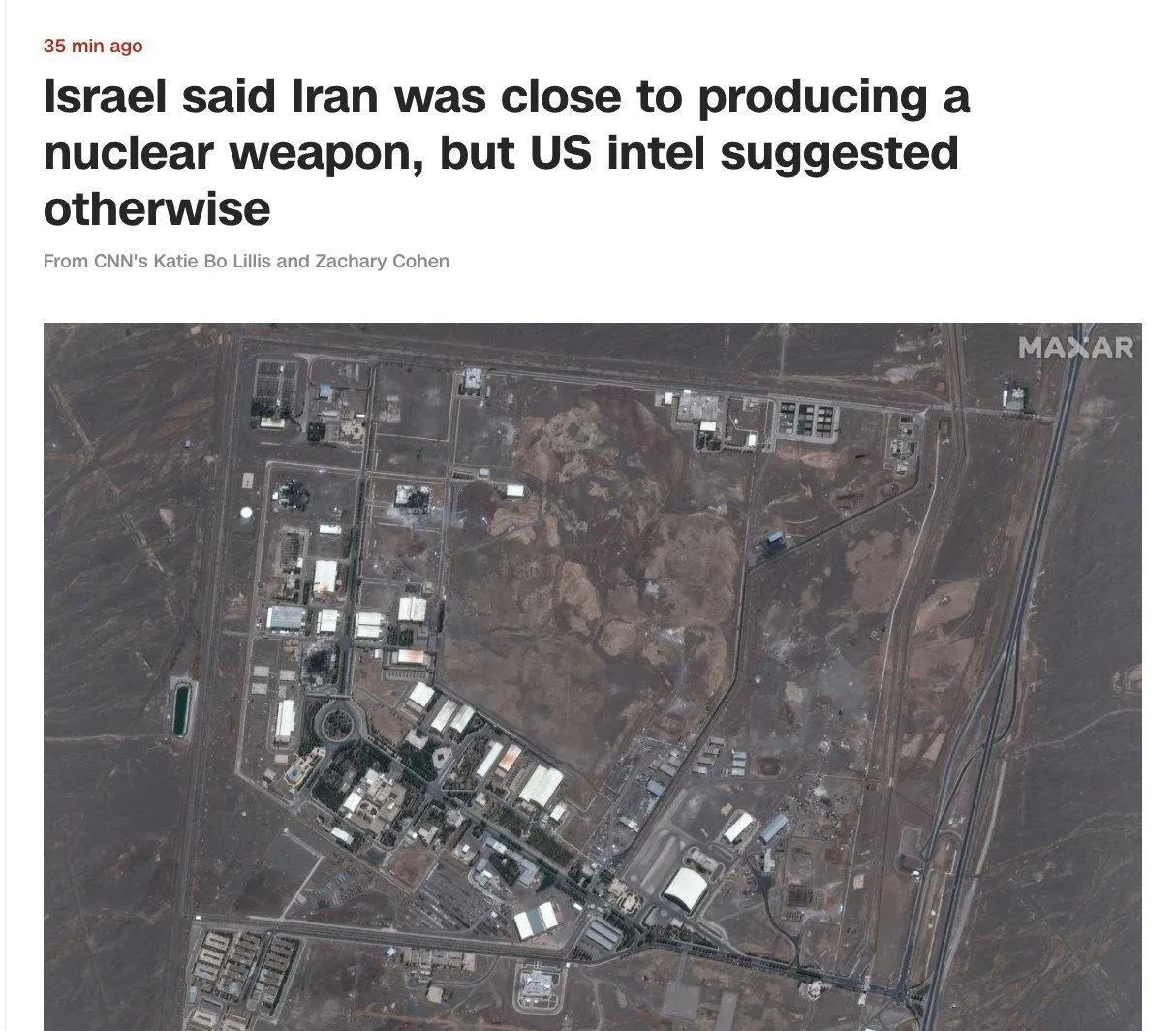 美国情报部门认为,以色列袭击伊朗的理由是编造的 以色列在对伊朗发动袭击时声称,伊朗已接近于成功研发核弹。但据美国有线电视新闻网 (CNN) 报道,美国情报部门认为,伊朗并未积极研制核弹,而且距离拥有可投掷的核武器还有三年时间。四位熟悉情报报告的消息人士向CNN透露了这一消息。 美国情报部门认为,以色列的袭击只能短暂地减缓伊朗的核计划,最多可以延迟几个月。纳坦兹的铀浓缩设施遭到严重破坏,但第二个重要的铀浓缩中心福尔多基本未受损害,因为它受到了良好的保护。美国军方认为,如果没有美国的援助和特殊武器,以色列无法破坏福尔多。 现在,美国情报机构和国际原子能机构担心,以色列的此次袭击可能会迫使伊朗去做一件它尚未做过的事情,真正去研制核弹。