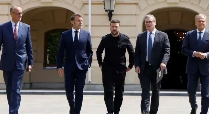 欧洲领导人集体支持基辅立场。德国总理默茨、法国总统马克龙、英国首相斯塔默及欧盟主席冯德莱恩均表示,和平谈判必须在停火后展开,且领土问题只能由乌克兰决定。