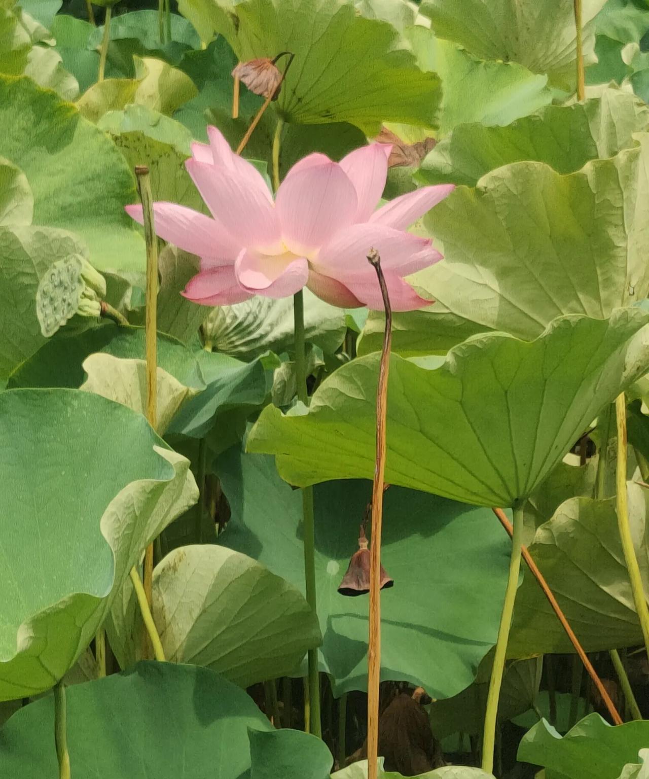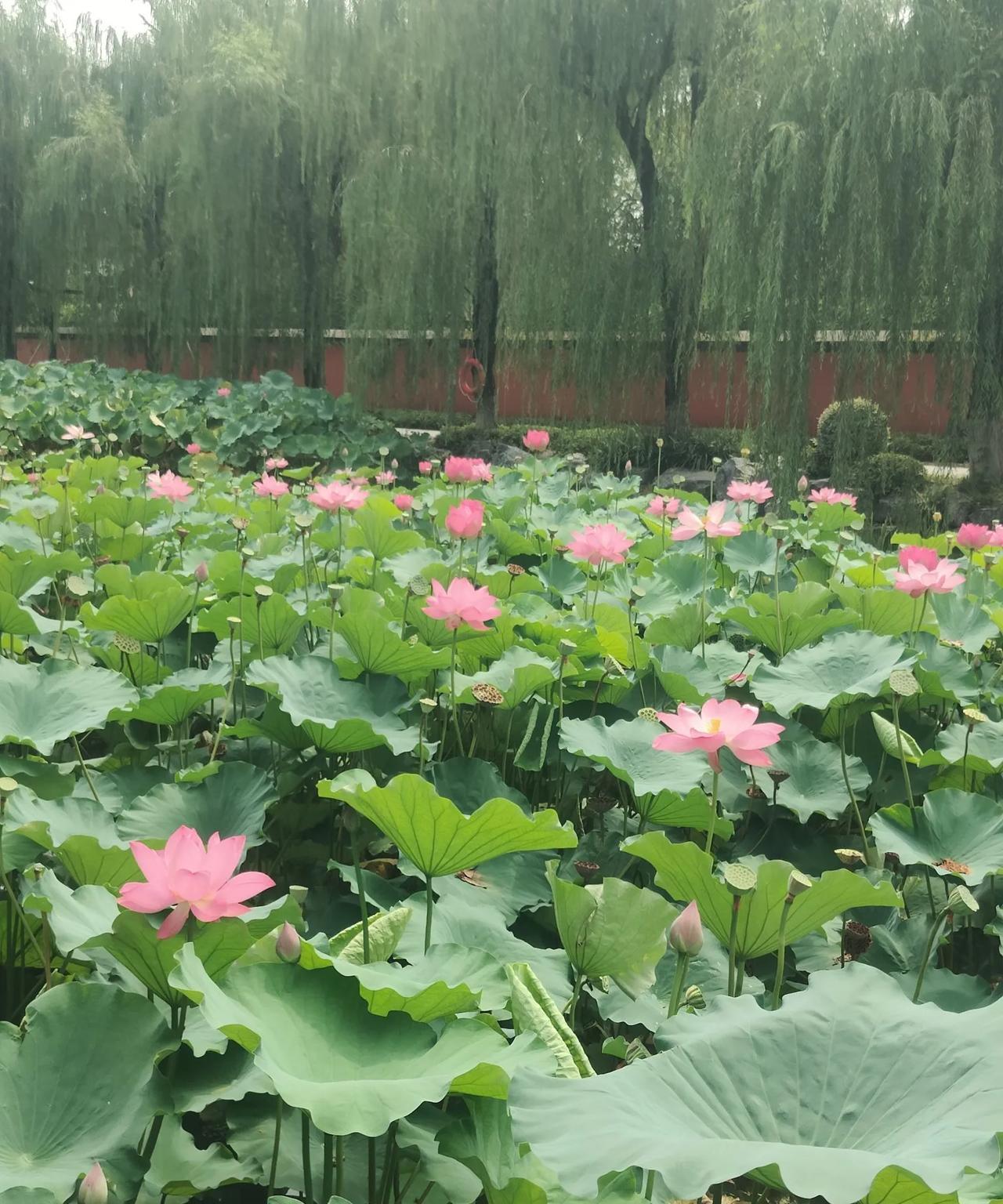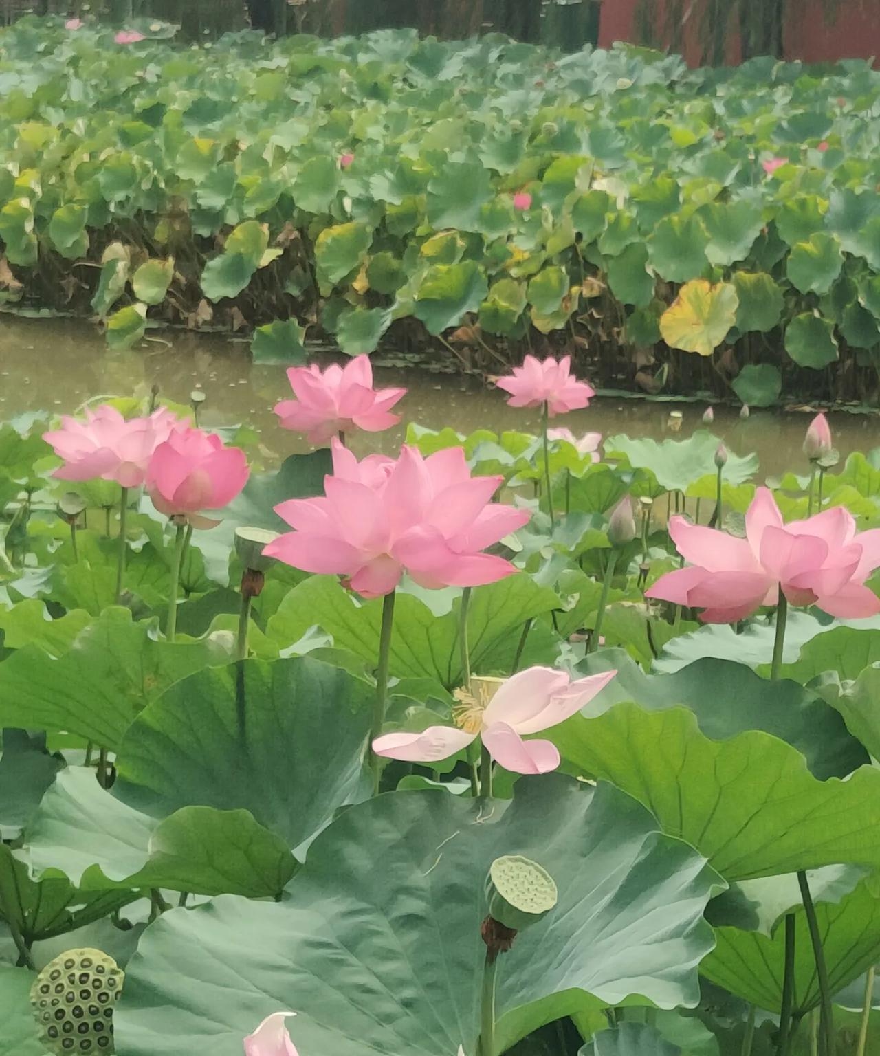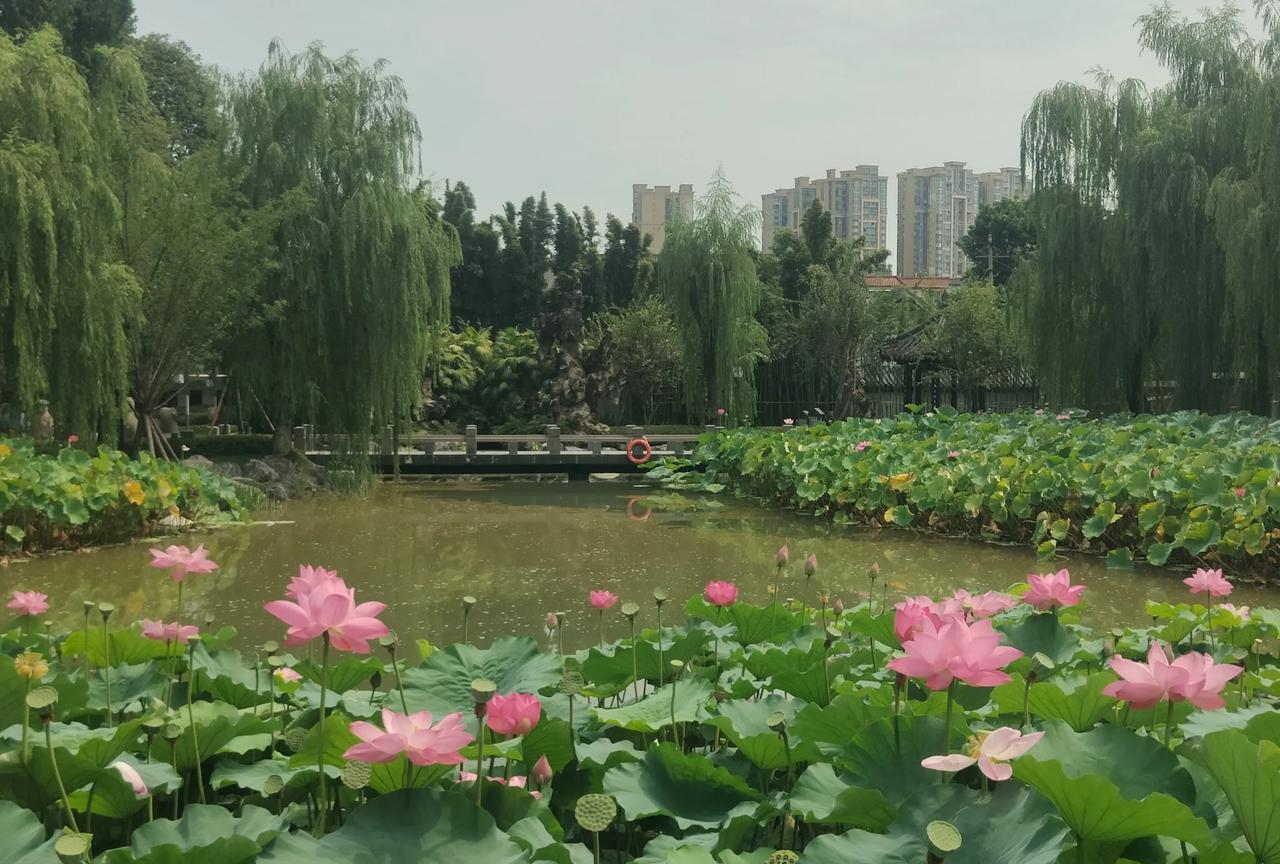 若是有人问,成都哪里的荷花最好看,最出片?我个人认为望丛祠的荷花可以秒杀所有景区里的荷花。望丛祠的荷花植株高大,茎秆粗壮,叶片宽厚,花期长,从六月一直可以陆陆续续开到八月,不仅花色艳丽,而且花朵特别大,花的形状也特别好看。今天去望丛祠,没打算开荷花,因为我知道荷花开的季节已经过了,只是听说望丛祠又重修了,想过去打个卡,拍个小视频。结果一进去,就让里面的荷花喧宾夺主了,我感很惊讶,都这个季节了还可以看到荷花,虽然大部分荷花都已经凋谢,但仍然有少量的荷花争奇斗艳,招蜂引蝶,让不少来此游玩的人频频拍照,流连忘返。以前在红光那边住,一年会去好几趟那里,大部分是为了拍照和赏景,当然也包含观赏荷花。没想到几年之后,再次到望丛祠仍然有惊喜。