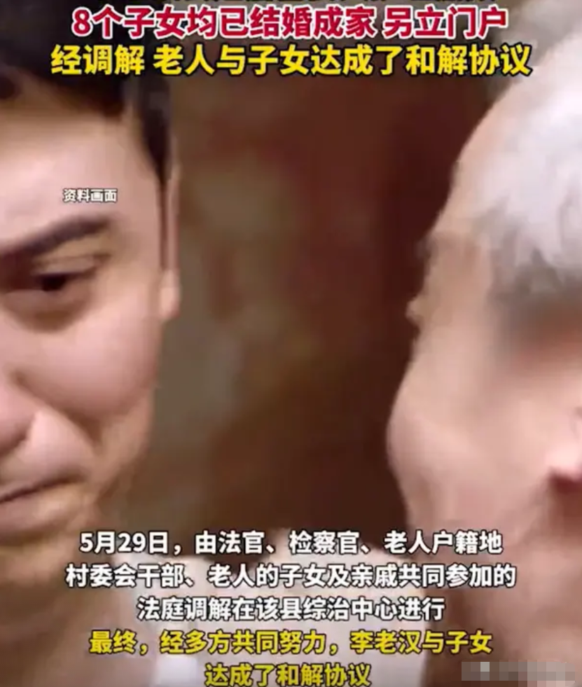 到这一刻,他们才决定浪子回头。最终,多方力量共同努力,李老汉的这8个子女,决定跟自己的老爹达成和解协议,轮流来照顾自己的老父亲。