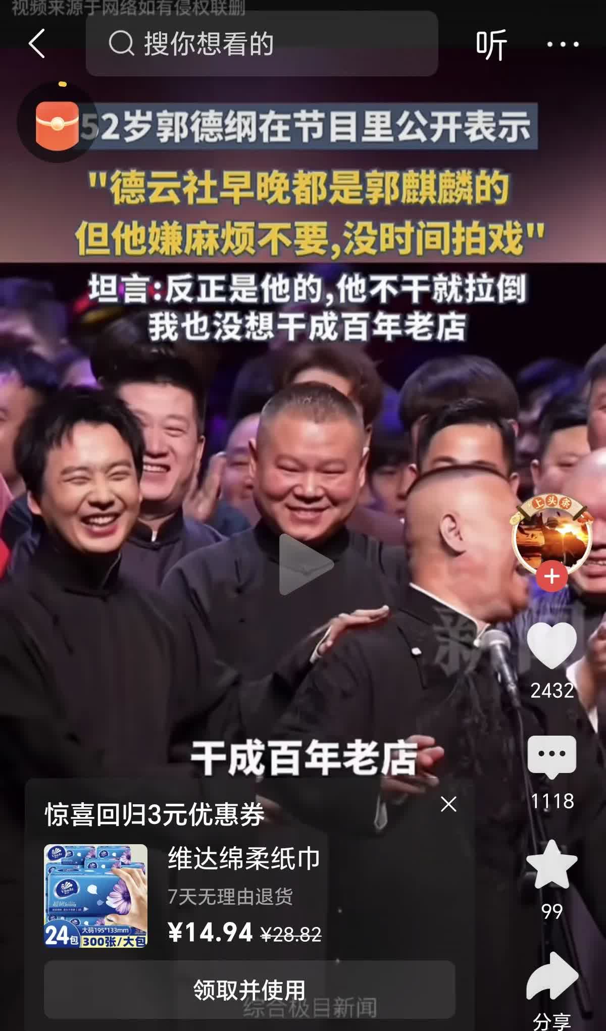 郭德纲一直强调,以后德云社是郭麒麟的! 自从,郭麒麟在节目里说,堂前尽孝后,郭