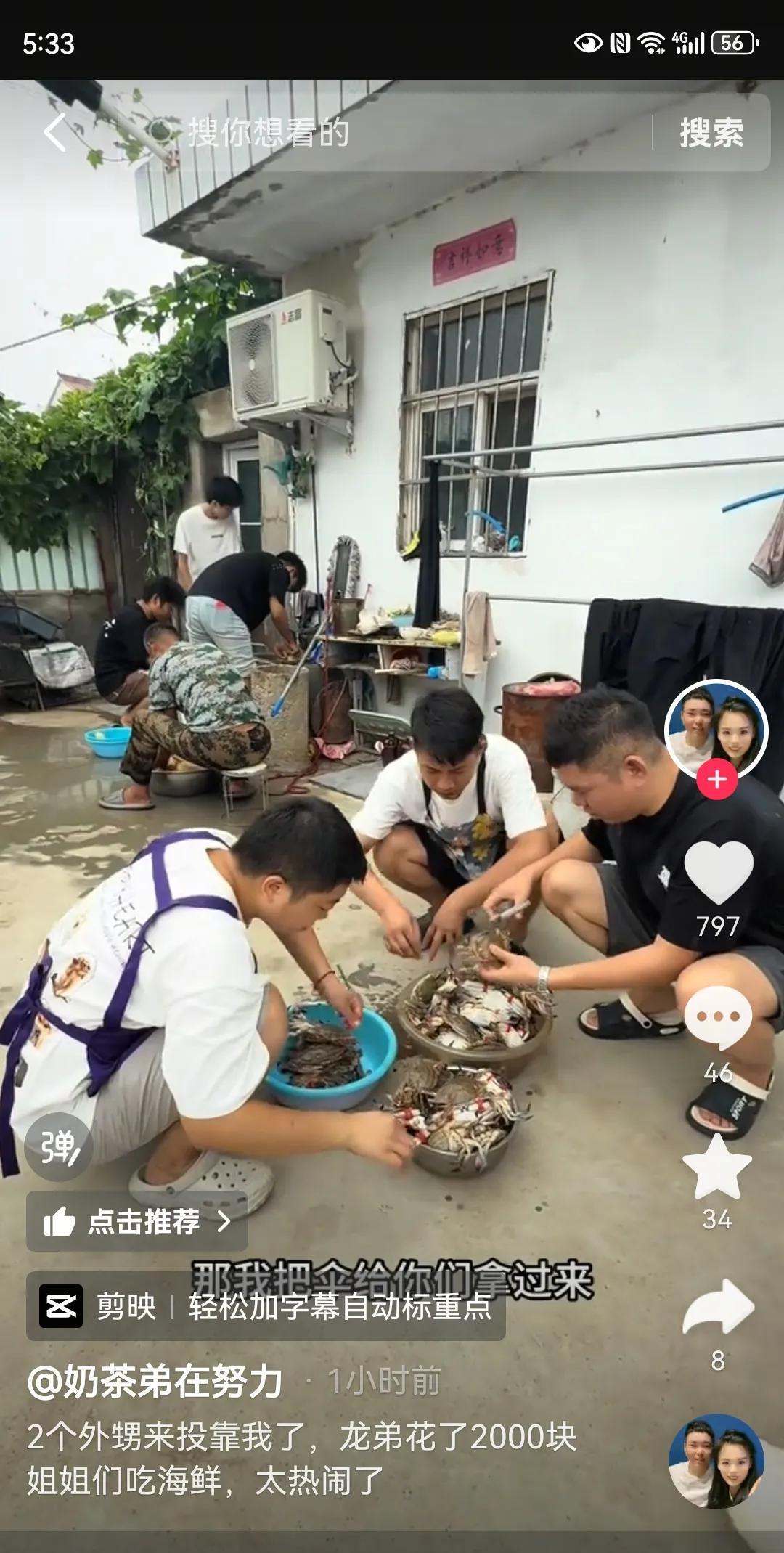 “有钱就是老大”在奶总家族具象化了。 为了迎接姐妹回娘家,奶茶弟花几千块钱请她们吃海鲜,老爷子还亲自杀了只十来斤的大公鸡来招待远嫁的女儿女婿。龙哥还没走进院子,就都叫他赶紧进厨房,连菜刀都得自己磨。搞不懂全是从小吃海鲜的海边长大的一群人,居然不会做海鲜,让在四川做川菜,在山西吃面食的俩女婿进厨房做海鲜大餐。 奶总和东青是带领团队赚钱的大功臣,全家老老小小都在忙,就她俩坐那边嗑瓜子,还得让侄子王一涵给她俩撑伞。女儿回娘家不动手帮忙干活,让年老驼背,腿疼的父母动手去伺候她们,也不怕折福吗?老胡的家庭教育真有点儿缺失,三姐妹除了菲菲勤快点儿,这俩是一点儿自觉性都没有。 大姐二姐现在也很会甩锅,把自己管不了的儿子都托付给弟弟,让他带领他们去创业。李子昂不去苏州,奥子不去四川,不能让外公外婆生气,那只好让舅舅舅妈来操心咯。就看奶茶弟怎么来教育这俩外甥,还有自己家的一个大儿子,三个站出来都比他高,比他壮。不过,刚好可以凑一桌麻将,带他们钓鱼,推牌倒行,毕竟那才是他最擅长的。