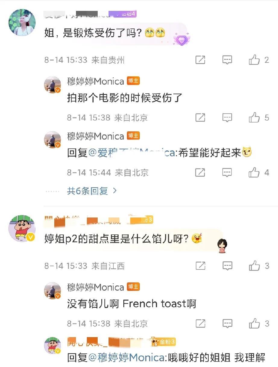 穆婷婷曝受伤治疗太疼痛,两边臀宽腰120多针 8月14日下午,穆婷婷在社交媒体发文,谈到了自己受伤治疗的情况。 穆婷婷发文内容,主要提到了两点,一是他做的烧烤,乍一看像是烤红薯切的块;另外她自己曝光了受伤治疗缝针的照片,据说两边臀宽腰120多针,看起来就觉得疼,她自己也说很疼,刻骨铭心! 很佩服她的意志力,可以这么勇敢的面对,坚强的康复训练; 有网友问是锻炼受伤吗?穆婷婷回复是拍摄电影的时候受伤了; 的确不容易,希望她尽快好起来吧! 祝福!