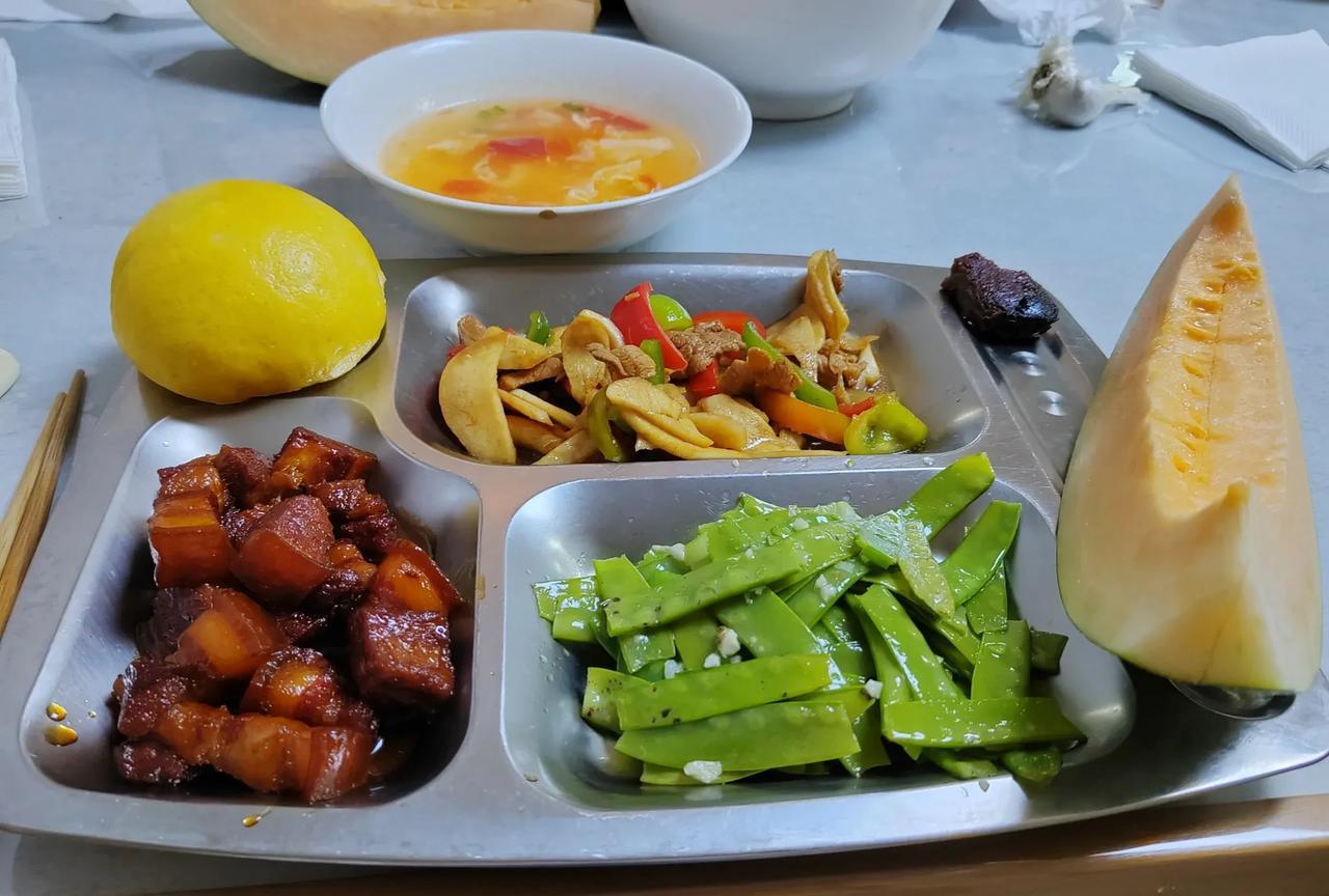 靠港了!好友们!俗话说的好哇,计划没有变化快,可不是嘛,早上还说,16号进港装货,到了中午突然起锚,先到内锚地,到了内锚地刚抛好锚,进港!这计划说变就变,甲板上的兄弟们一个个的不高兴啊!要是跑的再慢一点,也不用多费劲,抛锚再起锚了! 我们船舶上个月的21号,从日照开航,本月3号到达澳洲黑德兰锚地,原本计划是8号靠港装货,现在总共推迟了6天,今天晚餐后进港了,这不得了了,赶紧再把所有的库房检查一遍,厨房里的角角落落,又收拾了一下,最后刷了地面,等待澳洲各级官员的检查吧! 今天的午餐做了淮南牛肉汤,葫芦瓜炒虾仁,凉拌油麦菜。晚餐做了红烧肉,茭白炒肉,素炒荷兰豆和西红柿鸡蛋汤!