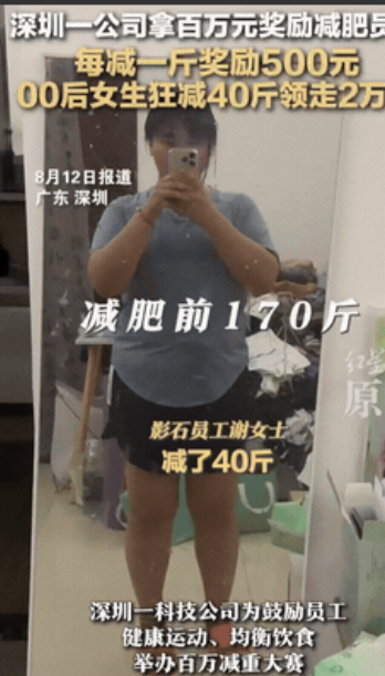深圳一家公司搞了个挺热闹的活动,员工报名减重,瘦一斤奖500块,胖一斤罚800块。结果一年下来,99个员工总共甩掉1900斤肥肉,平均每人掉秤20斤,一起分了100万奖金。 根据8月12日的报道。深圳某科技公司的管理层认为,公司里年轻人多,大家平时要么对着电脑敲代码,要么开会、出差,运动少,不少人体重蹭蹭往上涨。管理层一合计,与其看着员工们年纪轻轻就发福,不如搞个能激励大家运动、健康饮食的活动。 于是,“减重大赛” 方案出炉:员工自愿报名,瘦一斤奖励 500 元,要是没管住嘴胖了一斤,就得罚 800 元。这 “奖惩分明” 的规则,一下激起大家的好胜心,99 名员工纷纷报名,誓要在 “减重战场” 上拼一把。 活动刚开始,公司里热闹得像菜市场。有人在茶水间研究健康食谱,“鸡胸肉怎么做好吃?水煮太柴了,得换个做法!”、有人在健身房互相监督,“你今天跑了几公里?别偷懒啊,瘦下来有钱拿!”、还有人偷偷在工位底下踩椭圆机,被同事发现后,笑着说 “我这是‘带薪减肥’” 。 这一年里,员工们的减肥故事五花八门。有个 00 后女生,一开始管不住嘴,一周胖了 2 斤,被罚了 1600 元。她心疼钱,彻底 “痛改前非”,每天下班后去跑步、跳操,还跟着营养师学做饭。 90 天下来,居然减重 40 斤,拿到 2 万元奖金,把之前罚的钱赚回来不说,还倒赚一笔,成了公司里的 “减肥明星” 。还有一群男员工,组了个 “兄弟减肥团”,每天相约去打球、爬山,谁要是想偷懒,就被群里公开处刑。 原本大腹便便的他们,慢慢练出了腹肌、马甲线,体重掉了,精神头也足了,工作效率都跟着提高。到了年终 “算账” 的时候,数据让所有人惊喜:99 名员工总共减重 1900 斤,平均每人瘦了 20 斤!按照规则,公司拿出 100 万奖金,给大家平分。 发奖金那天,公司里像过年一样热闹。员工们排着队领钱,有人数着一沓沓钞票,笑得眼睛都眯成缝;有人当场拍视频发朋友圈,“这快乐谁羡慕了?我不说!” 。 这事传到网上,网友们纷纷表示羡慕。 有人调侃:“我要是在这公司,说不定能瘦成一道闪电,还能赚外快,老板缺人不?”。 有人羡慕:“这公司太懂员工了,减肥、赚钱、健康三丰收,别人家的公司从没让我失望过”。 还有人认真分析:“这种激励方式真不错,把健康和奖励挂钩,既让员工变瘦变健康,又增强了团队凝聚力,值得借鉴” 。 其实,这不只是让员工们甩掉了肥肉,还甩出了健康的生活方式。以前,大家总找借口不运动、不健康饮食,现在,为了奖金也好,为了健康也罢,都主动动起来、吃健康了。公司也发现,员工们身体素质好了,工作积极性更高,团队氛围更融洽,这比单纯发奖金还有价值。 对于这件事情,你们怎么看?