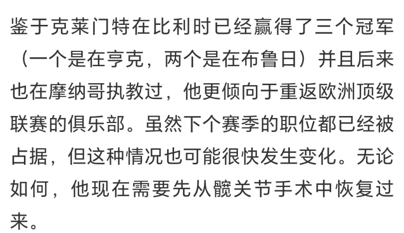 关于泰山队信任主帅有点眉目了,那就是比利时名帅克莱门特,克莱门特不是一线名帅,但