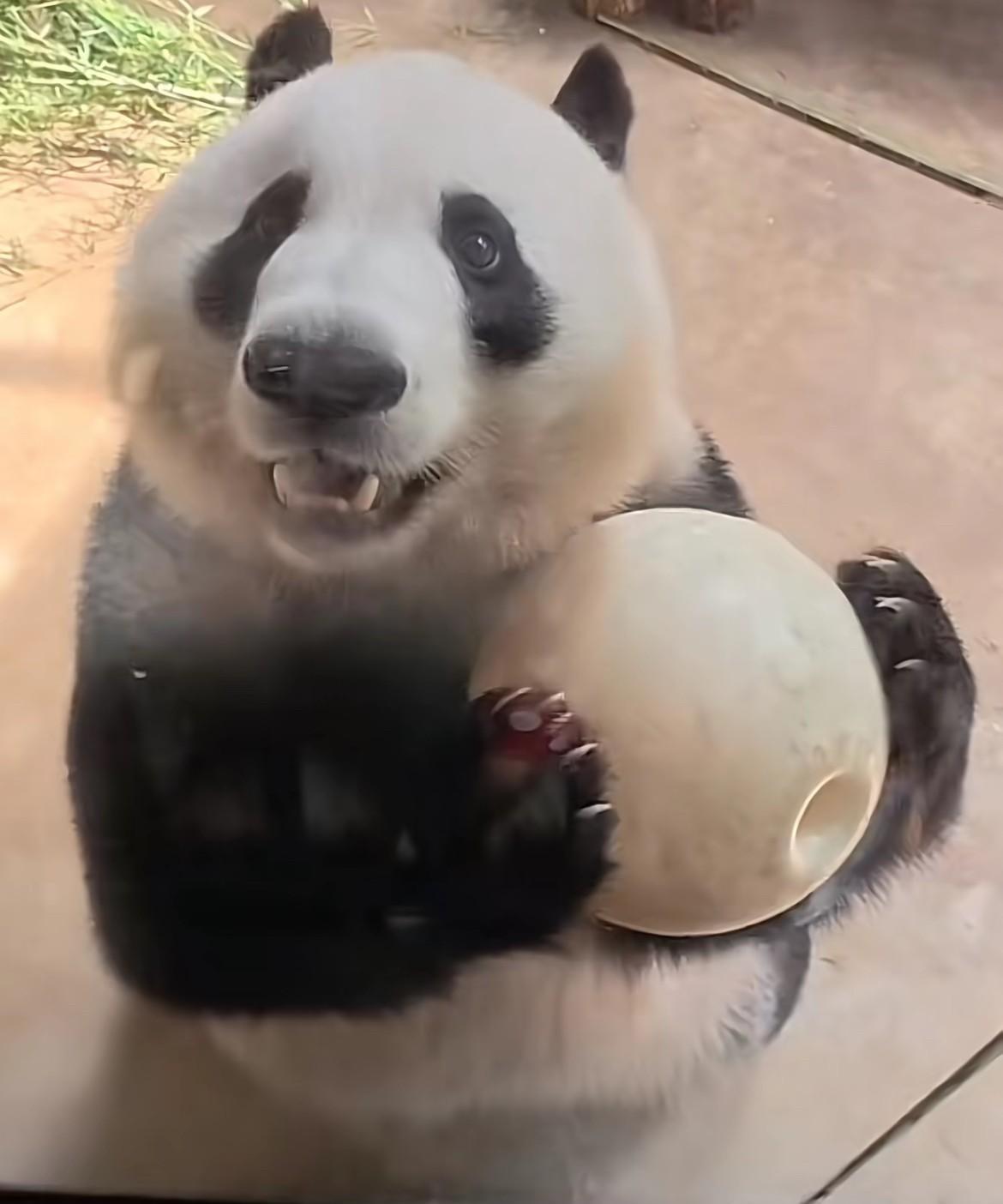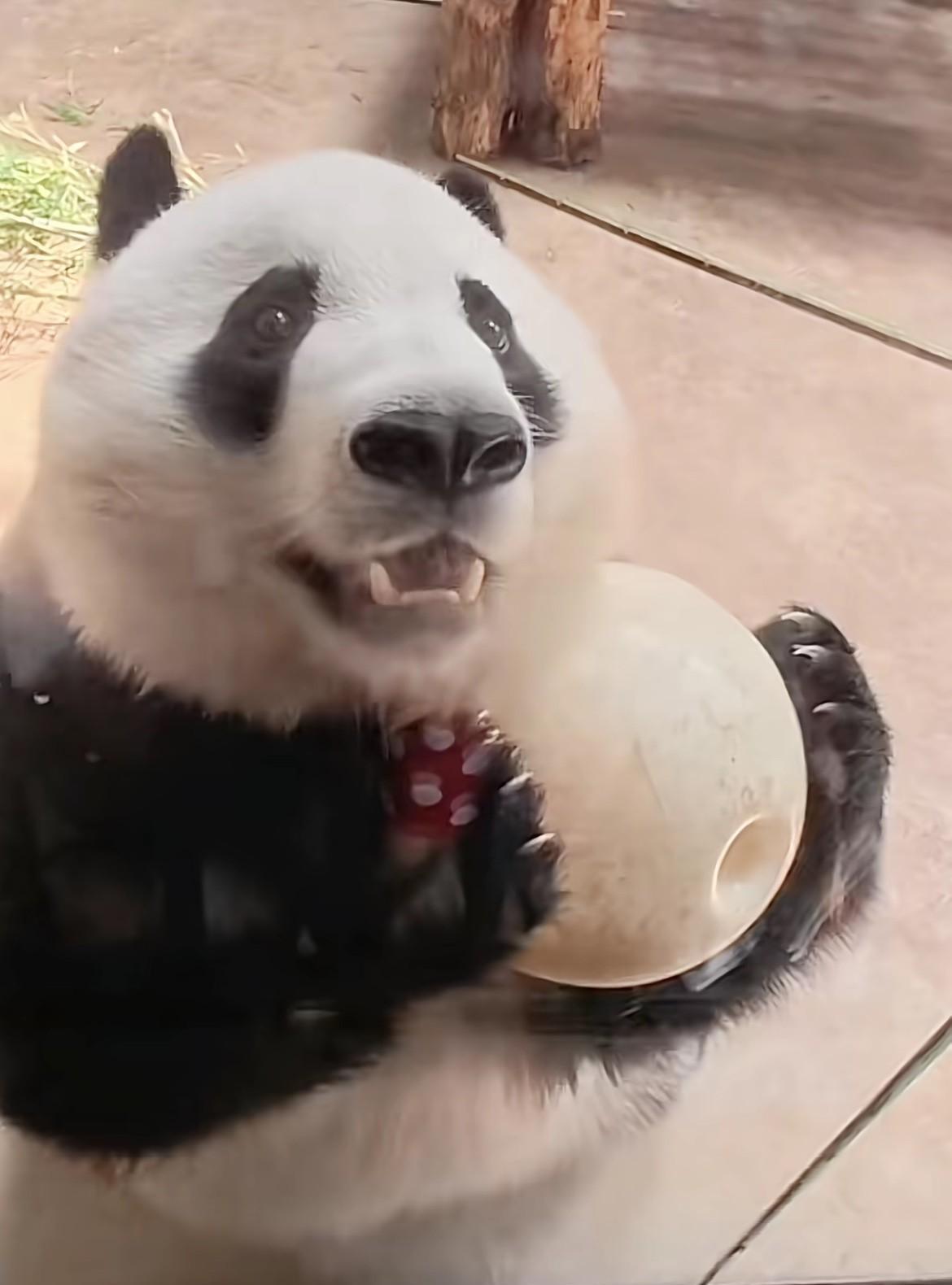 圆滚滚的身子,紧紧抱着小球,那神态简直和《冰河世纪》里抱着坚果的松鼠一毛一样! 这可爱浓度超标啦,看一眼直接被治愈 真的想rua秃这“小熊宝”~ 周六就去看她… #分享城市新鲜事#