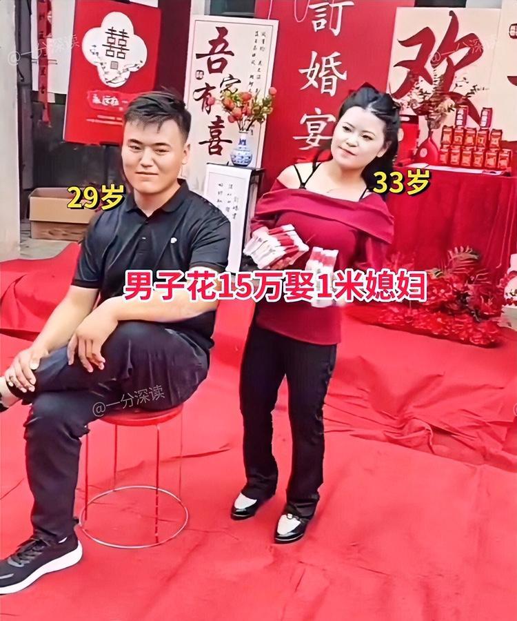 近日,宁夏29岁小伙花15万,却娶了33岁1米媳妇,连肩膀都不到,女子看着小巧,
