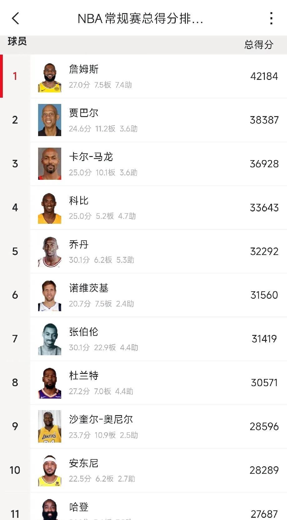 杜兰特即将超越乔丹!下赛季历史得分榜将发生巨变,杜兰特无愧历史最强得分手! 目前詹姆斯稳居第一,因为打了这么多年,也很正常; 杜兰特下赛季,按照场均26分,70场以内便可以超越乔丹32292,以他的实力,只要不受伤,大概率是可以的;等到退役大概率是可以超越科比的! 哈登下赛季超越安东尼也是基本没问题的,目前差距602分,按照场均20,只要31场就行了,这对哈登而言不难!退役时估计历史第九差不多了! 詹姆斯下赛季要冲击43000分了,基本也是问题不大!退役时估计45000也是有可能!