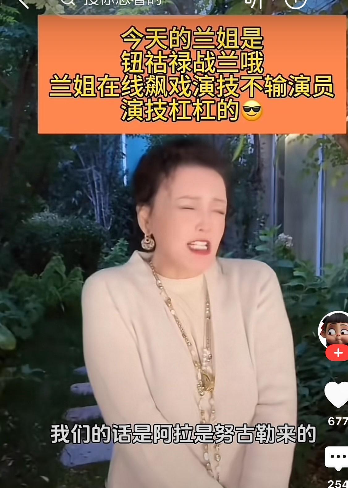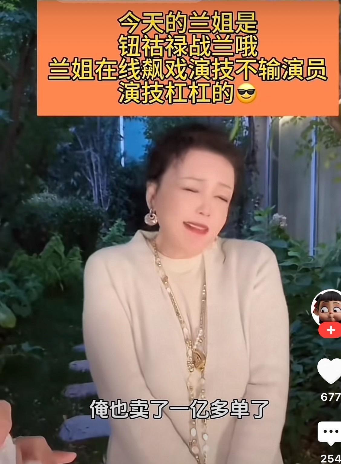张兰直播间现场演小品,简直太像了,她学着上海人说话,“你一个卖酸辣粉的,还想高攀我们上海人,不好意思,我是纽姑禄兰,俺卖酸辣粉也卖了一亿多单了,俺不是一般的蓝,不是大海的蓝,俺是扭姑禄兰”,期间还扭捏作态,不知道又pua谁呢,但是能明确这个人是上海人。 60多岁的老人家了,还不稳重,整天网上吵,家里吵,没有消停时候,骂人,造谣,啥都干,只要能卖出去货,儿子骂 她都能发出来,只要有流量。 有钱人的心理素质不是一般的强,你不敢做的事,人家驾轻就熟,不服不行啊。 不愧叫战兰……#头号创作者激励计划#