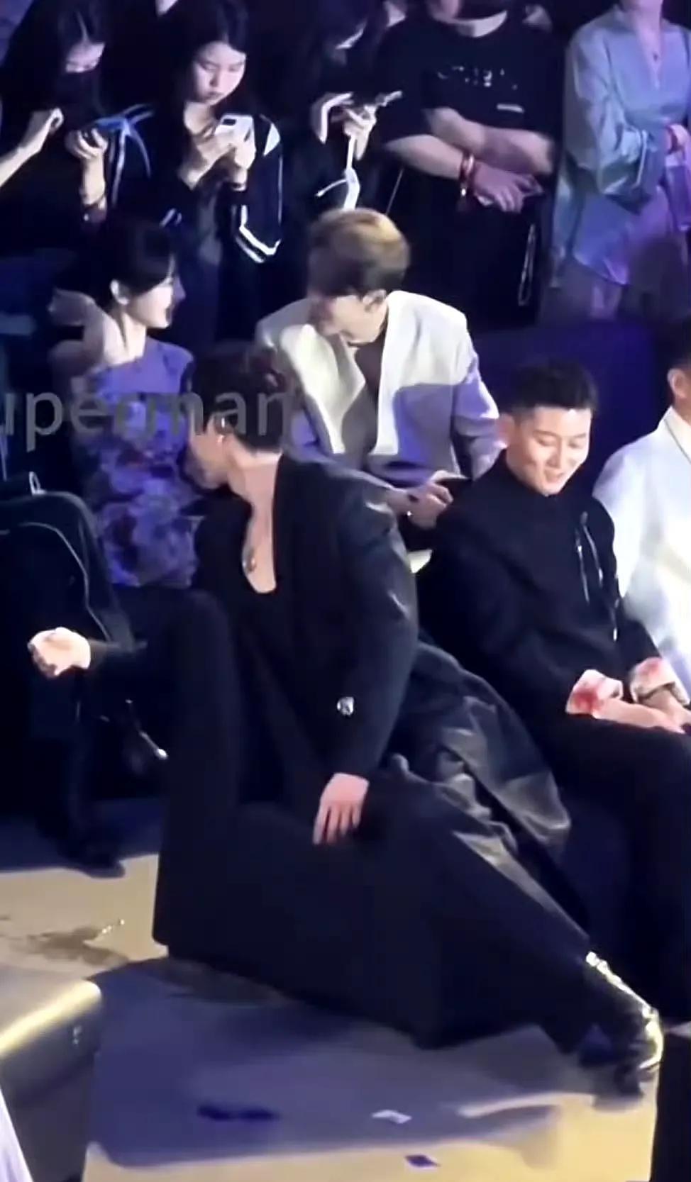 扭成油炸麻花的许凯,油头粉面,他费劲吧啦的在看谁呢? 也不知道这是啥活动,许凯听见了田女士的声音,赶紧转过去,热情的打招呼呢! 人家田女士缺你一个问候吗?人家在男人堆里坐着呢,人家正和帅哥曾舜晞聊的很是投机呢,曾舜晞也是歪着脖子看田女士,田女士可真招男人喜欢呐! 许凯好像也不社恐了,现在见谁都是人来疯!许凯见了他的待播女主,喜欢的不得了,装不了一点稳重矜持啦!一切只能从本能出发了!