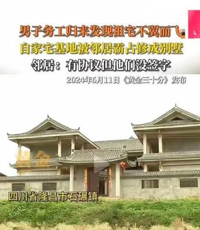 “灭门惨剧都是这样酿成的。”2024年报道,四川,男子在外打工三年,回来的时候发现自家祖宅消失得无影无踪,原先的地皮上取而代之的是邻居家的别墅,面积多达700平。而当男子想要邻居归还的时候,对方却表示:你妈去世多年,这宅基地属于集体的了。我就是占了又怎么了,不就是罚点钱吗?村里调解,邻居家不理,上级部门限期拆除,他们依然不理,还说男子是敲诈,男子大哭:要不回宅基地,没脸回家。 “祖宅被强拆,维权咋就这么难?”——四川王强的遭遇让人揪心! 四川成都打工三年的王强怎么也没想到,自己返乡后竟会遭遇如此晴天霹雳——自家祖宅竟然被邻居老张拆了个干净,还建起了一栋占地700多平方米的豪华别墅! 面对王强的质问,老张不仅毫无愧色,反而嚣张地回应:“宅基地早归集体了,我建房不就是罚点钱的事儿吗?”这话简直让人气炸了肺! 王强的父母早已离世,家里就剩他孤零零一个人。老张显然是瞅准了这一点,才敢如此肆无忌惮地侵占他的宅基地。 村里调解?压根没用! 上级部门虽然要求限期拆除,但老张依然我行我素,甚至放话威胁执法人员。他的底气从何而来?无非是在村里有点势力,而王强,一个老实巴交的打工者,面对这样的局面,除了无助和绝望,还能怎样? 其实,这种祖宅被占、维权艰难的事儿,古往今来都不少见。 清朝时,山西某地就发生过类似的事儿。某富户看中了邻居家的良田,便通过贿赂地方官员,硬是把土地划到了自己名下。邻居一家虽多次上告,但因富户势力庞大,最终只能落得个背井离乡的下场。现代社会,这样的悲剧也并未绝迹。 2010年,河南某村村民李某的宅基地就被村干部私自卖掉,李某多次上访无果,最后还是靠媒体曝光才得以解决。 这些案例无不表明,宅基地纠纷不仅仅是个人之间的矛盾,更是社会治理和法律执行的问题。王强的事情在网上传开后,网友们也是议论纷纷,各抒己见。 有人认为,王强应该赶紧找律师,收集证据,通过法律途径解决问题。 毕竟,法律是维护正义的最后一道防线,只有依靠法律,才能真正维护自己的合法权益。虽然法律程序可能漫长而复杂,但这是最合法、最有效的途径。 也有人建议王强采取强硬手段,甚至联合乡亲们一起拆除老张的别墅。这种方法虽然解气,但风险极大,可能会导致更大的冲突和损失,甚至让自己陷入法律困境。 还有网友呼吁,国家应该出台更严厉的法律措施,对违法占地行为进行严惩,这样才能真正起到震慑作用。 同时,加强农村宅基地的管理和监督,建立健全的巡查和报告机制,及时发现和处理问题,才能避免类似悲剧的再次发生。 更有网友建议王强寻求社会各界的支持,包括媒体、公益组织和爱心人士。通过媒体曝光,可以引起社会关注,给相关部门施加压力;公益组织和爱心人士的帮助,可以为他提供必要的经济和精神支持。 王强的事情让我们看到,社会公平正义的实现,需要法律的支持,也需要社会各界的共同努力。正如一位网友所说:“我们不能让老实人吃亏,不能让违法者逍遥法外。只有这样,社会才能真正和谐。”