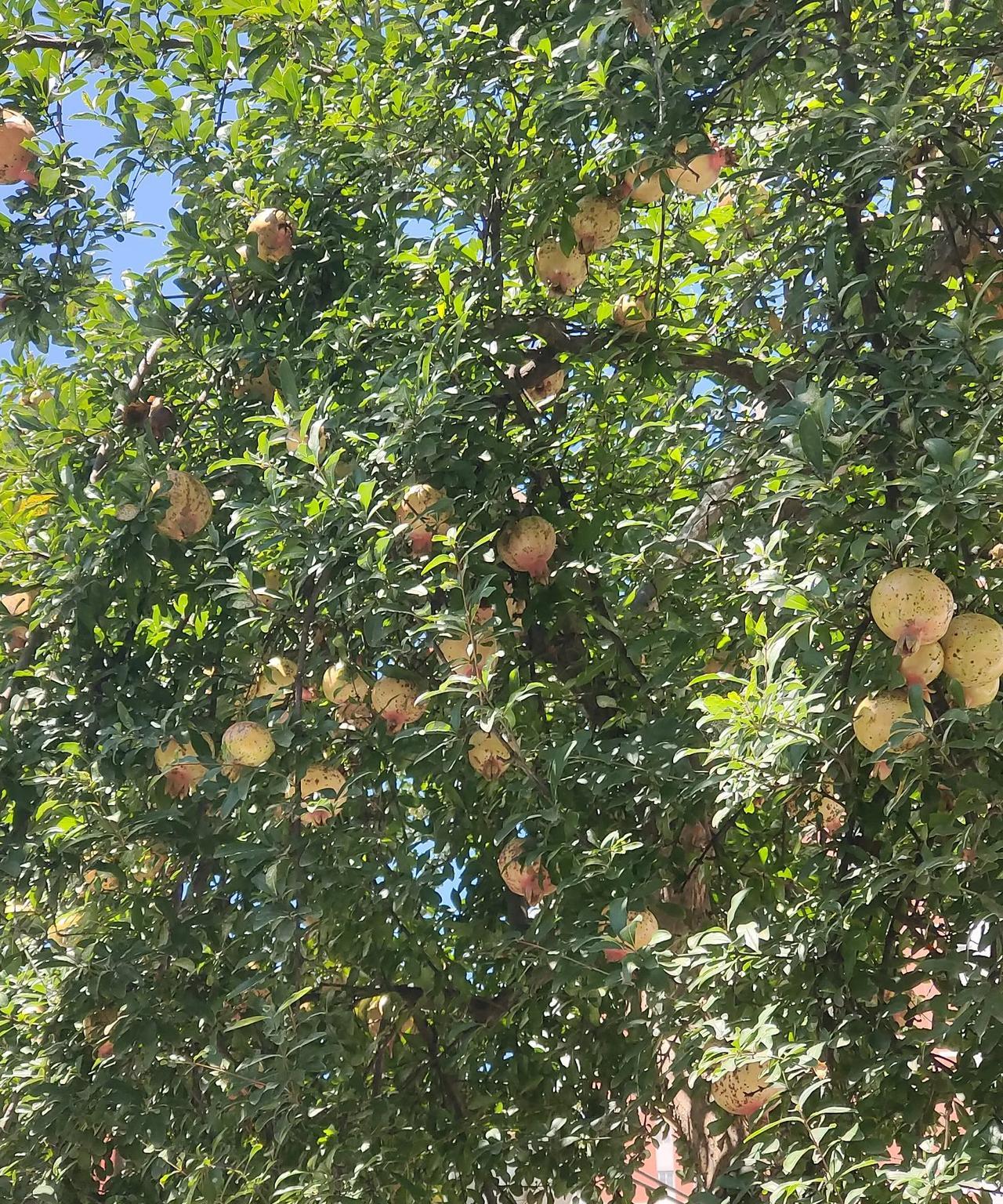 院子里这棵老石榴树还是27年前我亲手种下的,当时我还怀着我儿子,所以这棵石榴树跟我儿子一般大。 转眼二十七年过去了,这棵树都这么粗了,为了不让它遮住窗户,其它的枝丫都砍掉了,就剩下这一枝独秀了。看看今年的石榴长的可真不错,往年雨水多,坏的也多,没等成熟都掉差不多了,今年天旱又热的很,树上的害虫估计热死了,石榴竟然没几个坏果子,往年这个时候天天捡地上掉下来的坏果子,可烦人了,今年真没有。 我家的石榴成熟了能长两斤多,又大又红,石榴籽红玛瑙似的,吃着可好吃了。老人们常说,院子里种石榴多子多福,寓意挺好的。