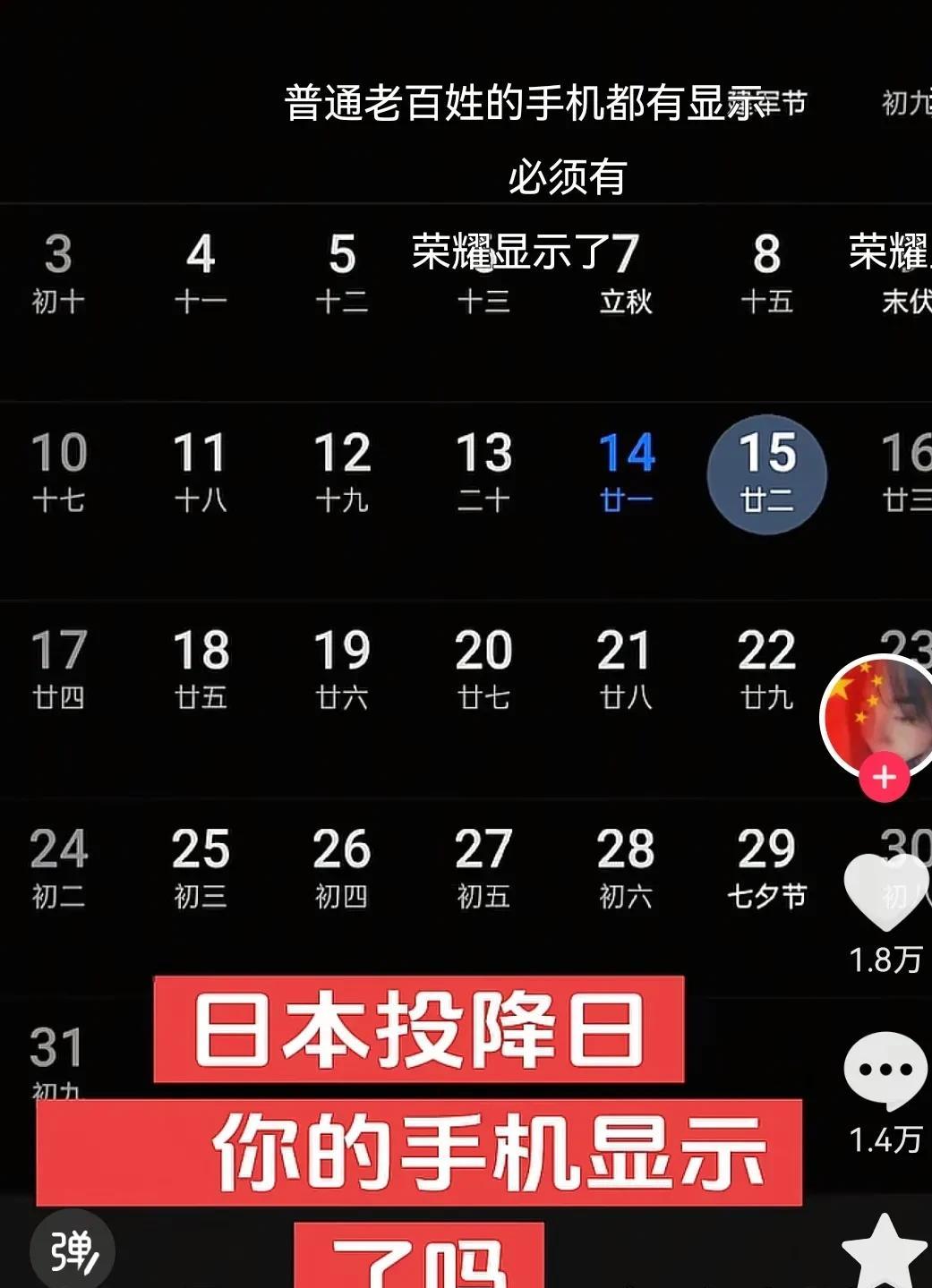 今天是小日本投降日 您的手机显示了吗? 铭记历史,不忘耻辱 吾辈当自强[赞] #中国抗日战争日# #二战后日本投降# #日本投降时间#