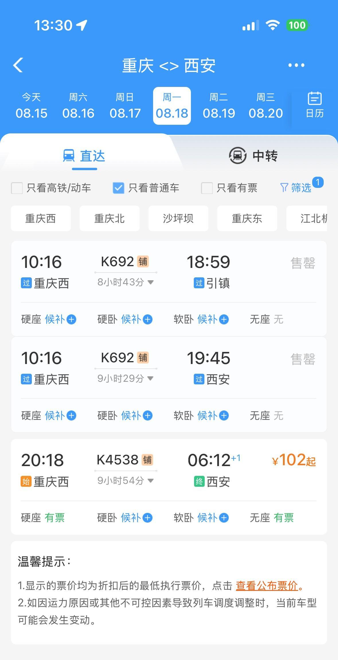 好像,再过一点时间,重庆--西安的双层绿皮火车就要停运啦?!8月15日,距离9月1日开学仅剩最后半个月了!暑假,即将结束!所以……大家如果想要体验双层火车的,可以体验一下K4536次、K4538次……硬座只要102块钱……硬卧也很便宜! K4538次双层列车,晚上8点18分从重庆西站发车,次日清晨6点12分抵达西安市……这个时间,对于旅行来说,简直是黄金时段啊!性价比,超一流! K4536次双层列车,上午7点58分从西安发车,傍晚6点33分抵达重庆西站……这个时间,怎么讲呢?!对于西安本地人来说,很不划算,但是,对于去西安旅游的重庆人来说,其实还是很好……可以看看沿途的风景……而且,因为是白天,还可以不买卧铺,就买硬座,102块钱……超级划算啊!#光线摄影世界曾兰谈天说地#
