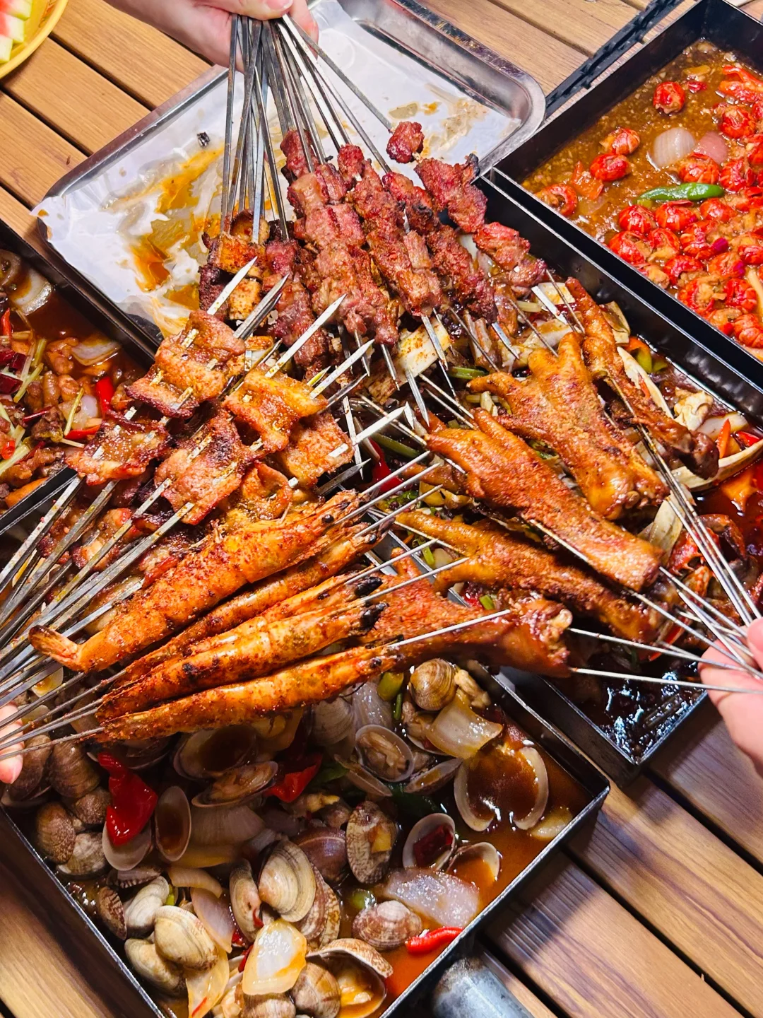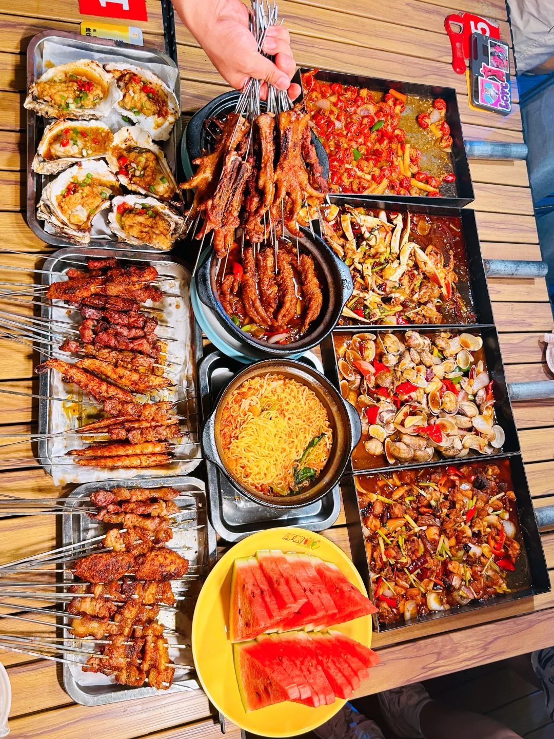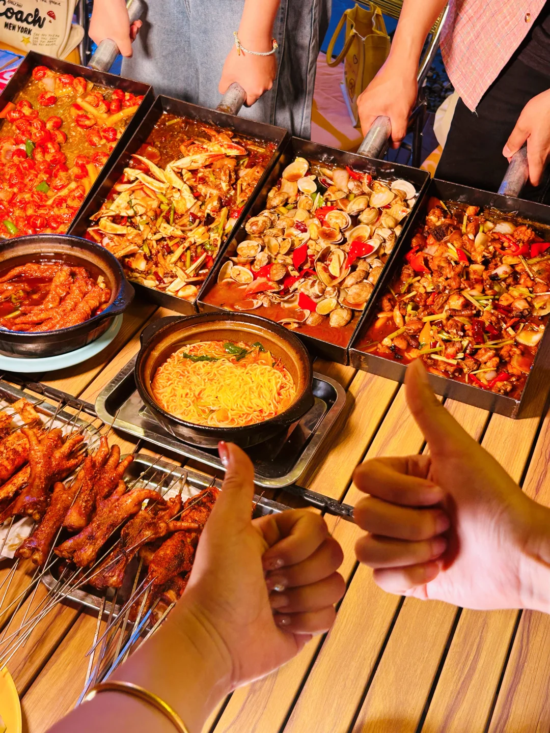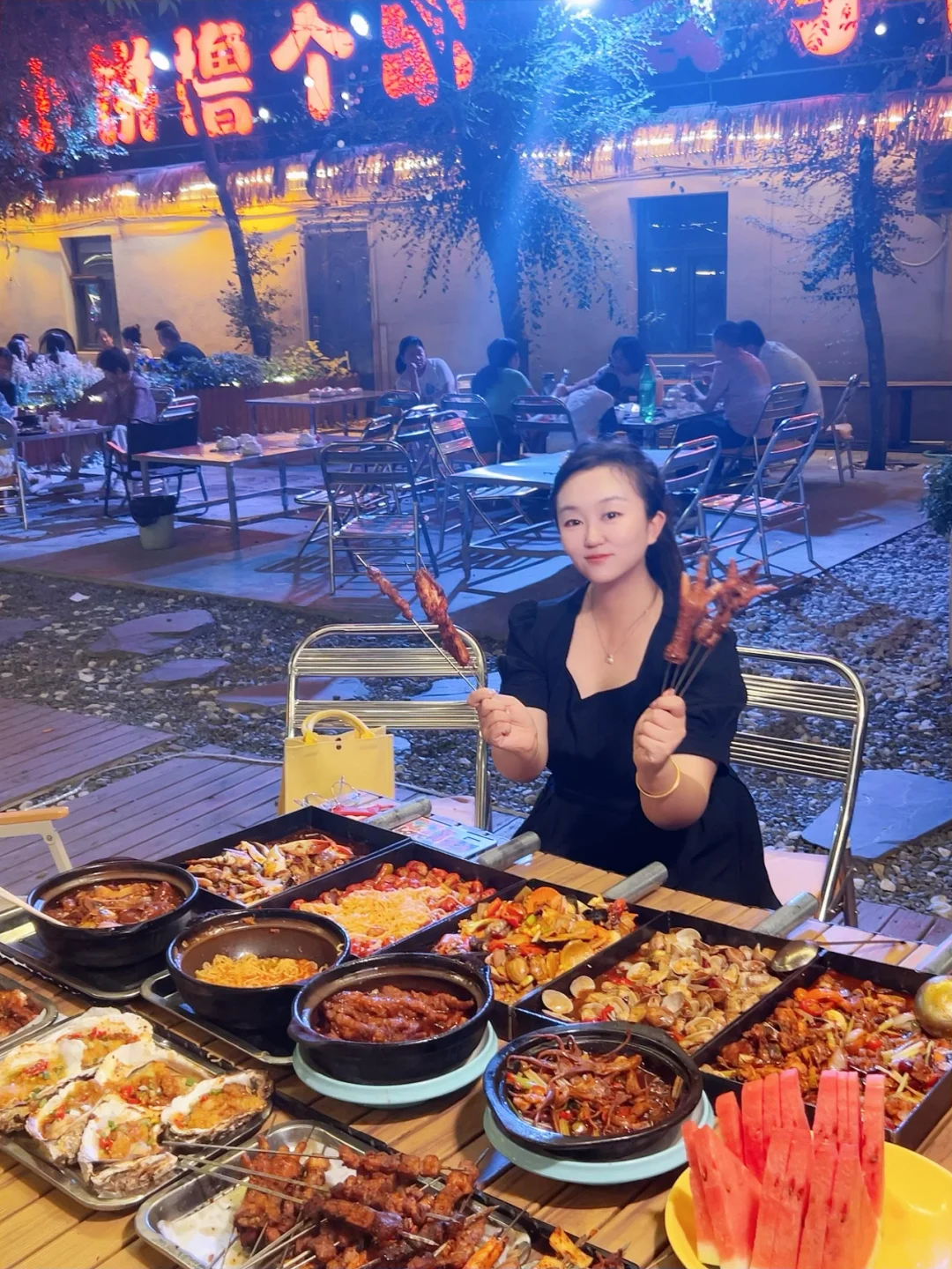 来吃我蕞爱的戳子系列喽🥰🥰🥰🥰 木桌配折叠椅,烧烤配啤啤🍺,晚风一吹,今晚又是和姐妹们大吃一顿的节奏~