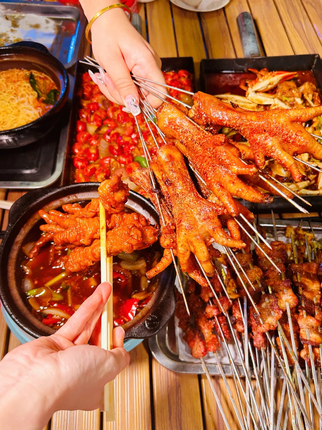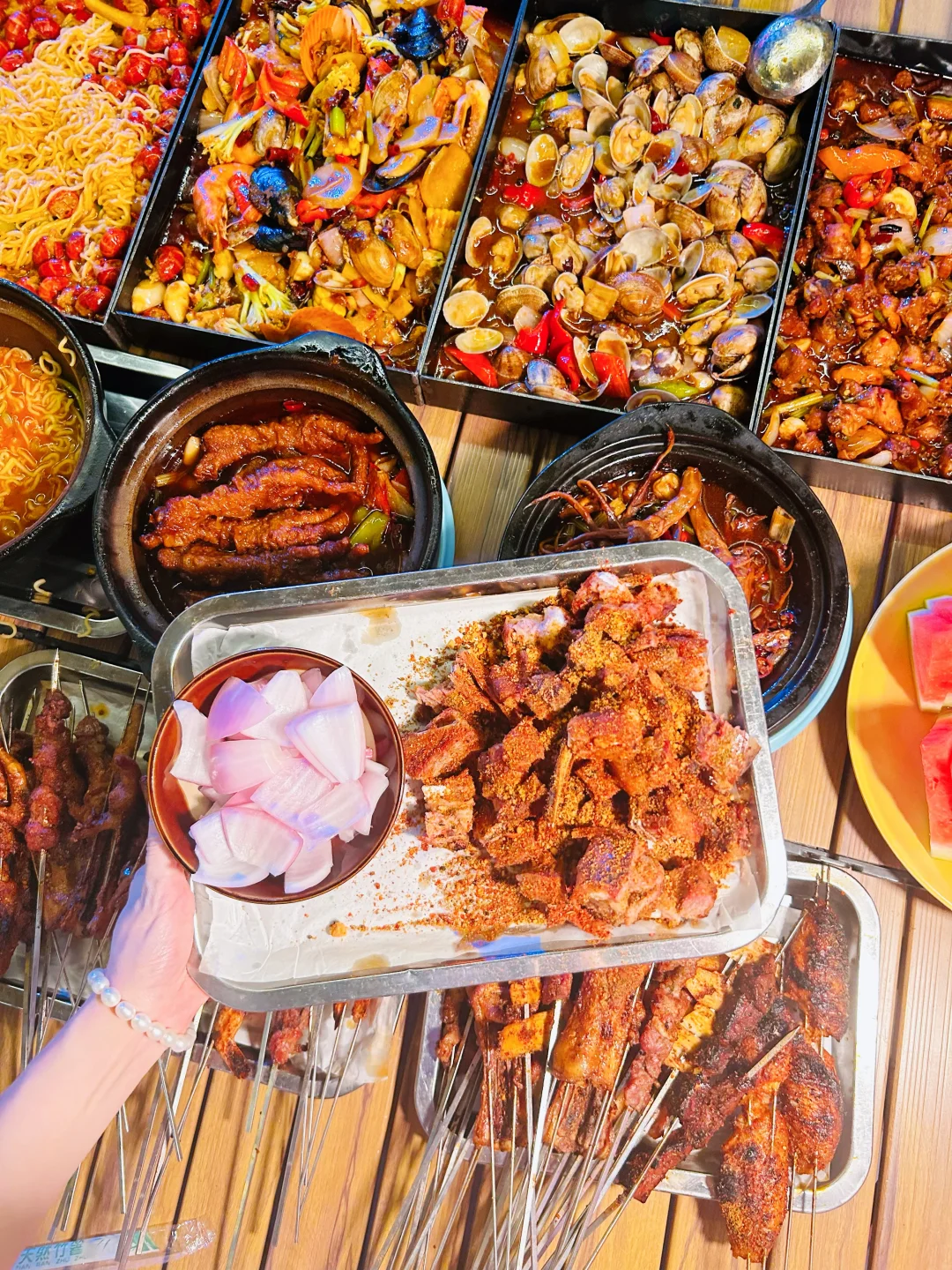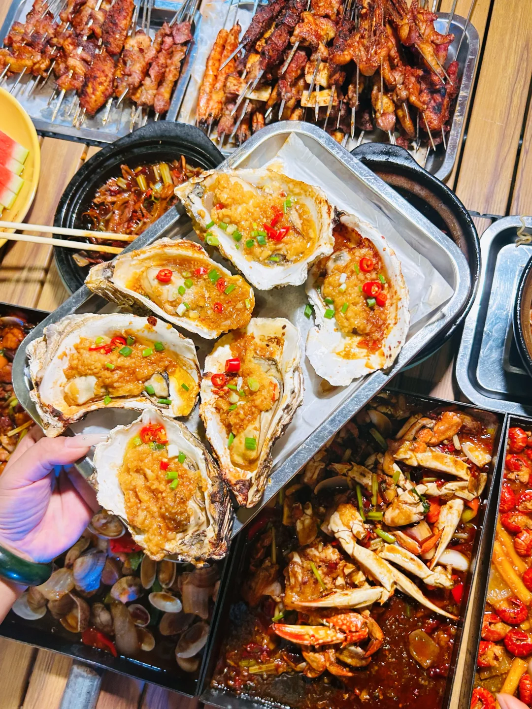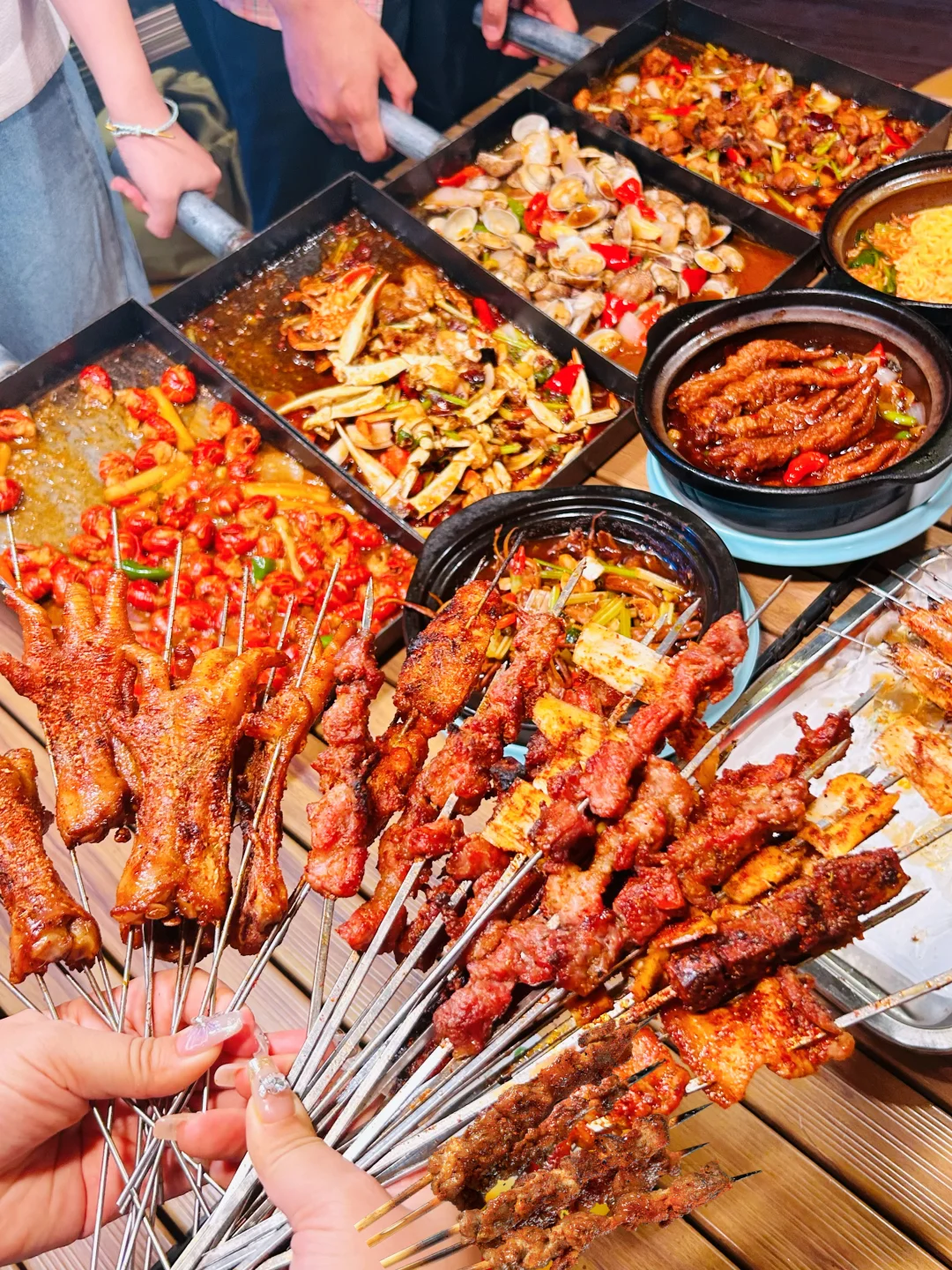 来吃我蕞爱的戳子系列喽🥰🥰🥰🥰 木桌配折叠椅,烧烤配啤啤🍺,晚风一吹,今晚又是和姐妹们大吃一顿的节奏~