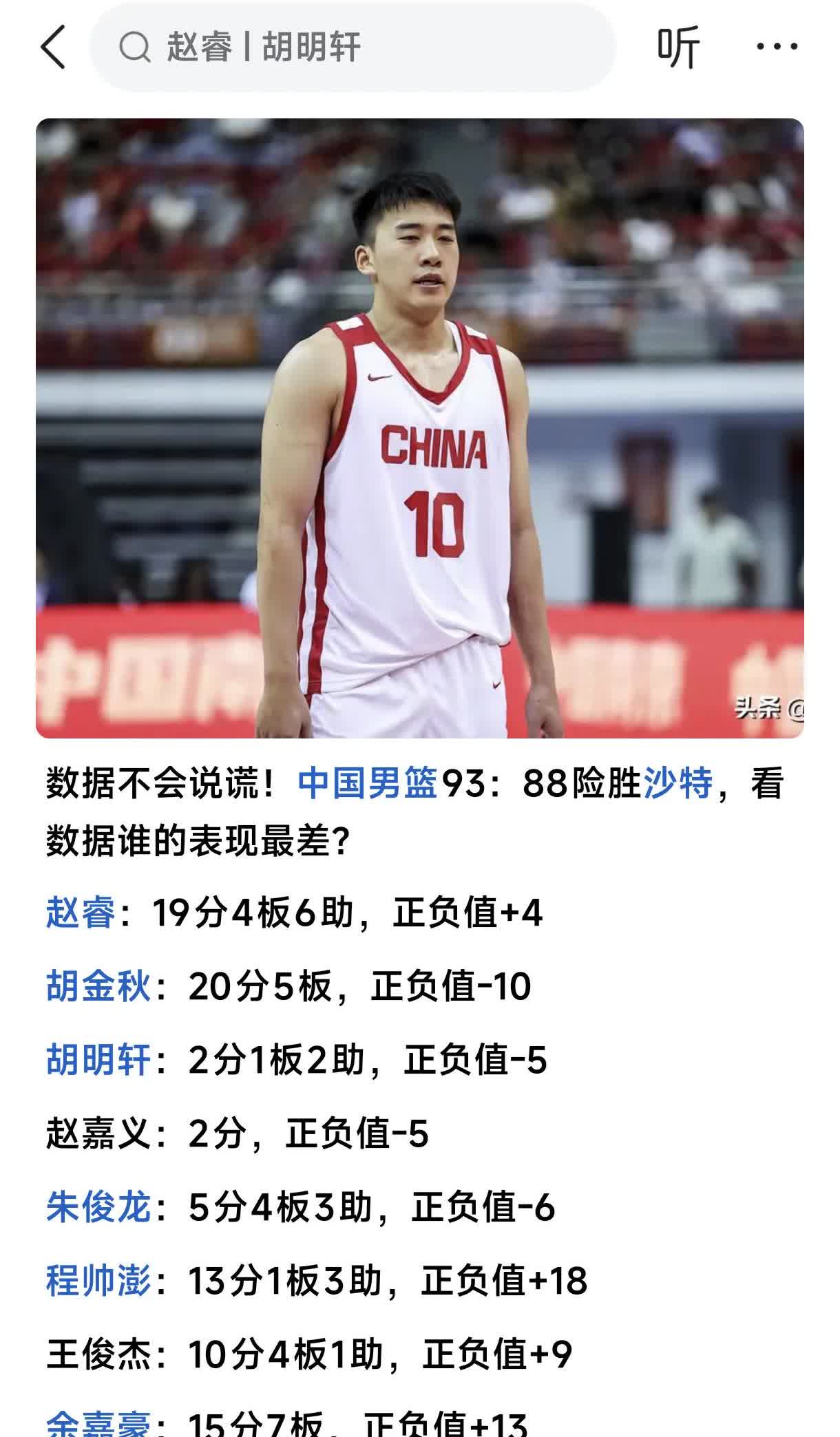 郭士强教练率领中国男篮在今天晚上和韩国男篮四分之一决赛,小伙子们打得不错。开场朱俊龙连续投中三分,胡金秋内线突破得分稳健,王俊杰外线投篮准确内线突破得分把握,赵瑞突破得分勇猛,廖三宁突破得分巧妙。尤其胡金秋内线突破被对手打破眼眶,流血不止,裁判竟然不吹,可中国男篮稍有不慎,就吹犯规。裁判企图左右比赛,但没得逞。 程帅鹏,胡明轩,不要有压力,半决赛应对放手一搏,轻装上阵。其他队员再接再厉一举夺冠! 郭士强好样的!中国男篮小伙子们好样的!不负众望,给球迷奉献一场精彩绝伦无与伦比的比赛!