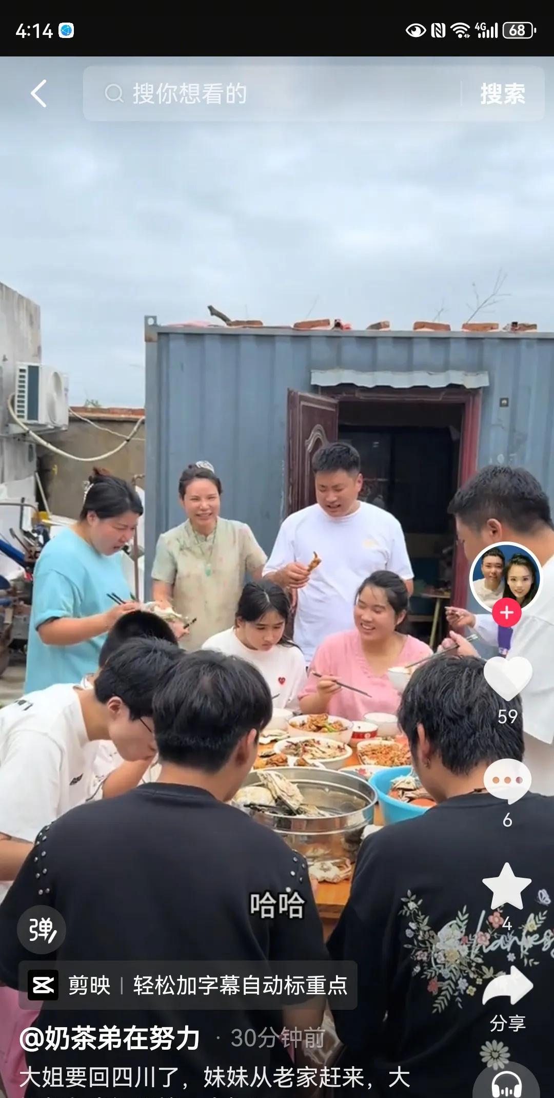 奶总家族大团圆,看着那一堆的人,儿孙满堂,老胡应该很欣慰,她是老王家的大功臣。 奶茶弟花了两千多买海鲜,要让他的海鲜大餐发挥最大的作用,把每一个吃货的吃相都怼脸特写。吃得越起劲的,他拍得越清楚,要让他那钱花得值,至于姐姐姐夫,外甥的脸面就顾不上了。他知道他的大姐二姐又懒又馋,海鲜刚蒸好就端她俩面前,把她俩的馋相拍出来。老爷子两口子还在忙没上桌,一盘大虾,一盆子螃蟹就干没了,等晨晨出来剩个空盆,只好等下一锅端出来,奶茶弟赶紧去叫甜甜出来,她还躺床上玩手机呢! 搞不懂她们家的教育,饭菜好了,直接用手抓着就开吃吗?不用等做饭的,老人,小孩儿,都叫出来一起吃的吗?个个的像八辈子没吃过东西那样,真无语!所谓的言传不如身教,那样的母亲能教出啥样的儿女,可想而知。 话说,这次菲菲穿了条孕妇裙出场,随时用手护着肚子,也没让她干活做饭,走路小心翼翼。吃饭特意让她好好坐着,炒了几年,评论区都说她怀孕了,这次是真怀上了吧?