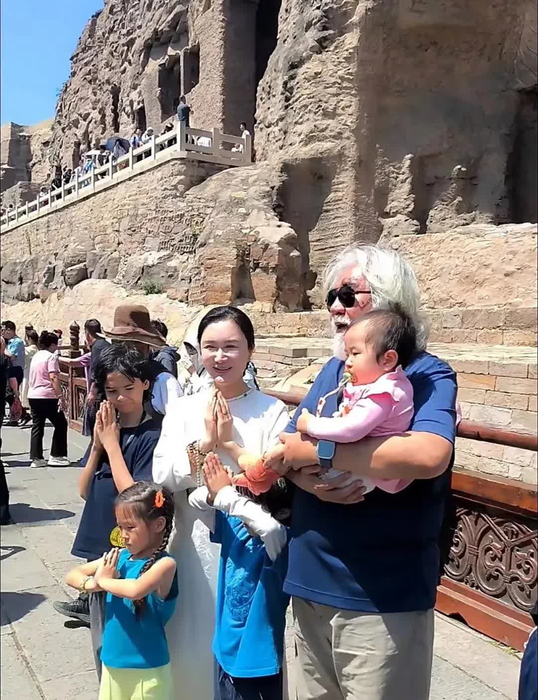 张纪中一家大同旅游,夫妻俩携儿带女租中巴出行,张导真是老当益壮,75岁了一路上亲自抱娃带娃看上去还挺轻松;妻子皮肤白皙但略显苍老,孩子们的小麦色肌肤都随张导,一家子充满了温馨快乐哈!
