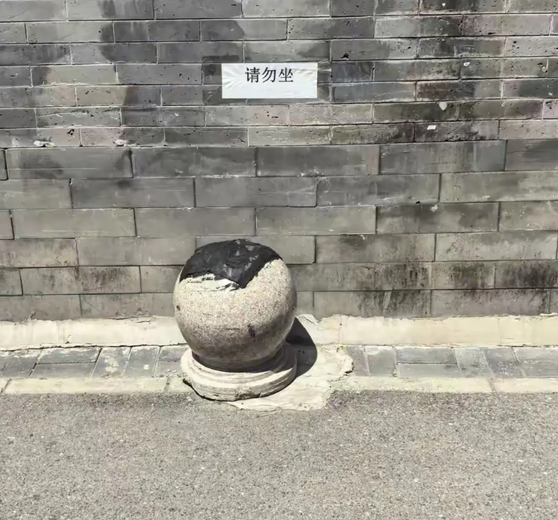 可是没想到不久后,这些石球上面都被涂抹了沥青,而且墙上还贴着“请勿坐”的提醒,本来这胡同里的道路就很窄,放着石球占路不说,为了不让人坐在石球上休息,就石球上涂抹沥青,可以说能想出这馊主意的人,心真是比沥青都要黑了!