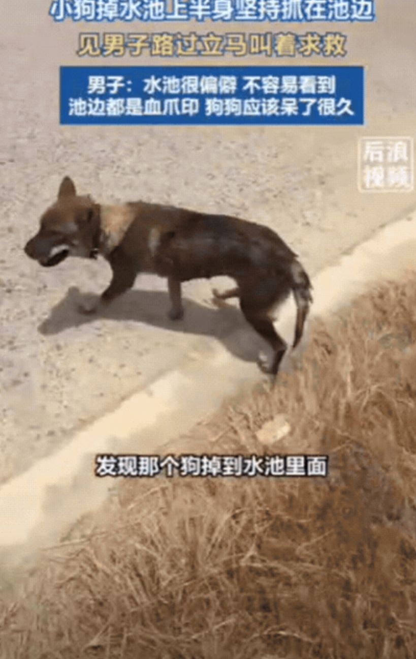 小伙听见叫声时,心里 “咯噔” 一下:“这荒郊野岭的,啥东西在叫?” 等看清是只狗扒在池边,尤其是瞧见那些血爪印,心一下子就揪紧了。他怕狗急了咬人,可看着那可怜样,又实在不忍心不管,只能一边喊“别咬我”,一边慢慢把狗提上来。